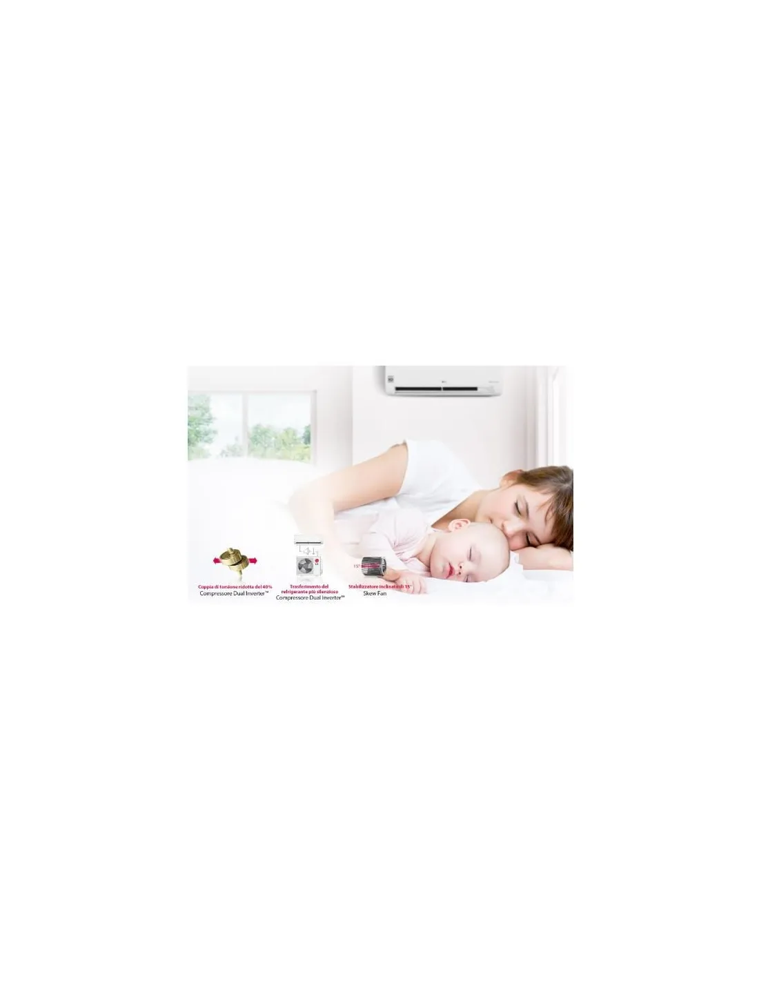 Il climatizzatore LG S12EC, è un sistema monosplit inverter a pompa di calore, progettato per offrire funzioni di raffrescamento, riscaldamento, ventilazione e deumidificazione.Con una potenza nominale di 3,5 W in raffreddamento e 4,0 W in riscaldamento, raggiunge la classe energetica A++/A+, riducendo i consumi senza compromettere le prestazioni.La connettività Wi-Fi e la compatibilità con Google Home permettono un controllo intuitivo e da remoto, anche tramite comandi vocali, per un'esperienza di climatizzazione su misura.