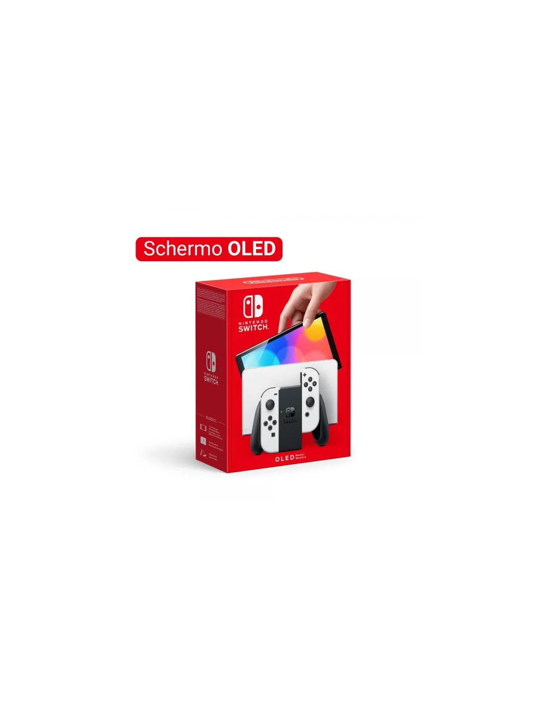 Nintendo Switch (modello Oled) Bianco, schermo 7 pollici. Piattaforma: Nintendo Switch, Modello del processore: NVIDIA Custom Tegra. Colore del prodotto: Bianco, Tecnologia di controllo del gioco: Analogico/Digitale, Tasti funzione per il controllo del gioco: Tasto Home, Pulsante di accensione. Tipologia display: OLED, Dimensioni diagonale schermo: 17,8 cm (7"), Risoluzione del display: 1280 x 720 Pixel. Capacità memoria integrata: 64 GB, Tipi schede di memoria: MicroSD (TransFlash), MicroSDHC, MicroSDXC, Memoria espandibile fino a: 2 TB. Standard Wi-Fi: 802.11a, 802.11b, 802.11g, Wi-Fi 4 (802.11n), Wi-Fi 5 (802.11ac)