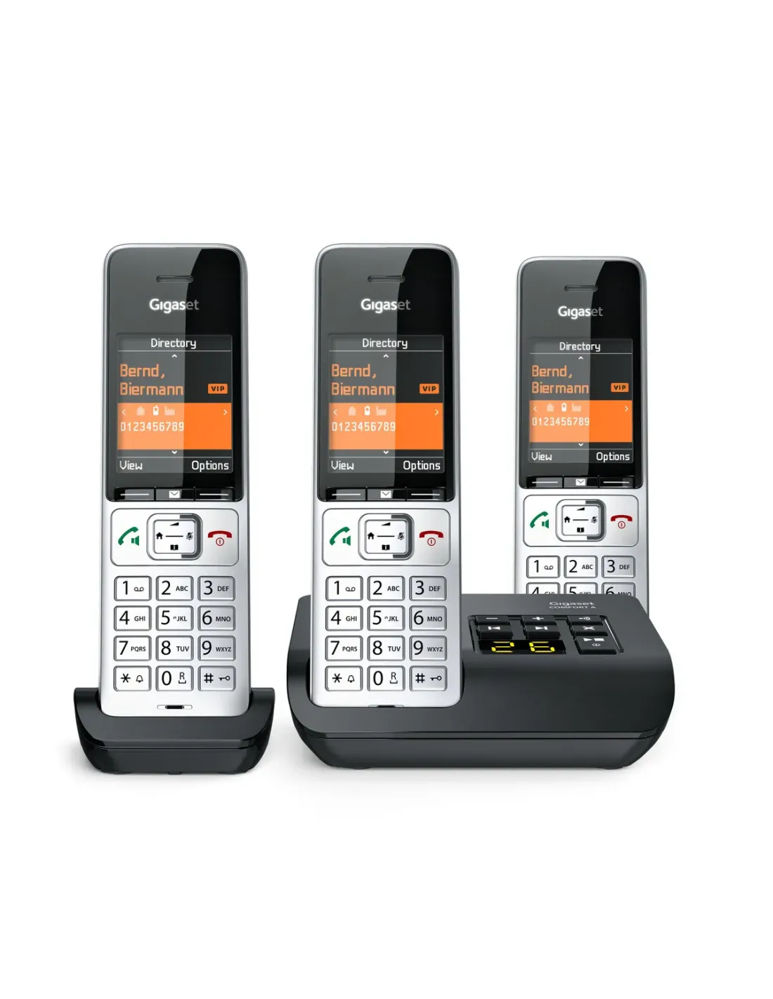 Gigaset COMFORT 500A Trio, Telefono analogico/DECT, Cornetta cablata, Telefono con vivavoce, 200 voci, Identificatore di chiamata, Nero, Argento