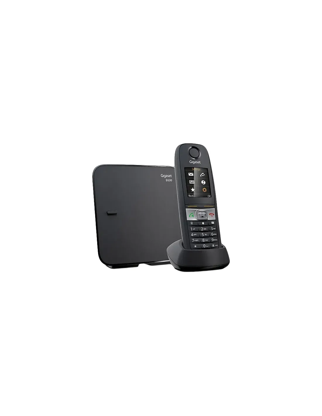 Gigaset E630. Tipo: Telefono DECT. Telefono con vivavoce. Raggio d'azione interno: 30 m, Raggio d'azione esterno: 500 m. Capacità rubrica: 200 voci. Identificatore di chiamata. Dimensioni diagonale schermo: 4,57 cm (1.8"). Colore del prodotto: Nero