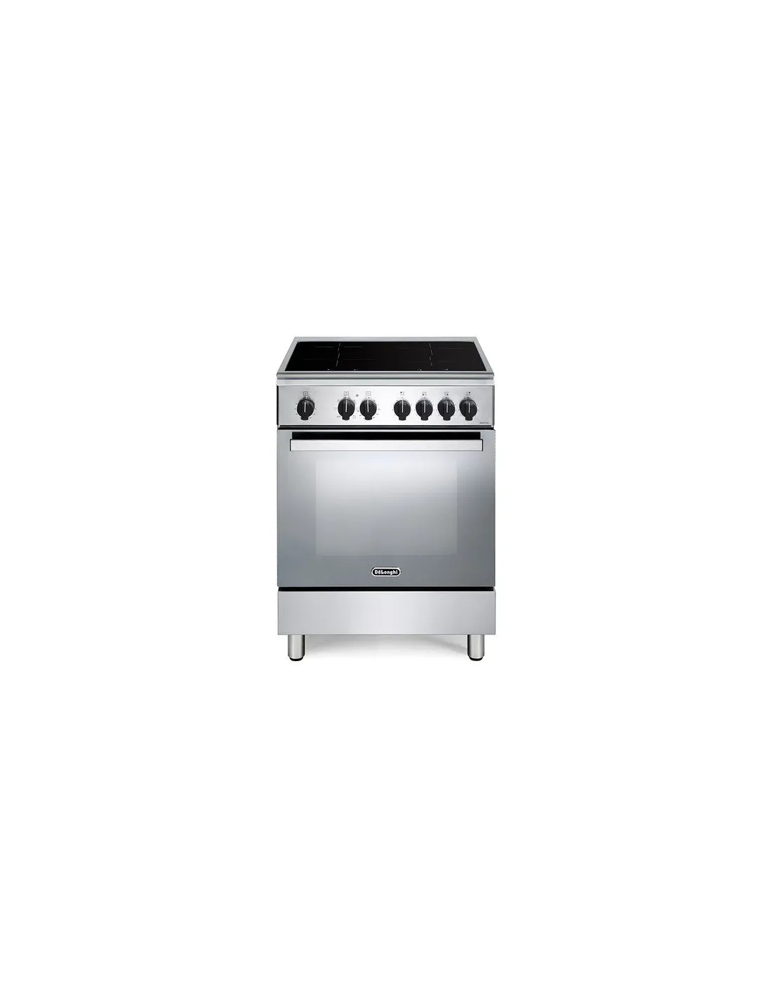 De’Longhi DMX 64 INL. Tipo di prodotto: Cucina, Colore del prodotto: Nero, Acciaio inox, Tipo di controllo: Manopola, Touch. Tipo di piano cottura: Piano cottura a induzione, Numero totale di fuochi: 4 Fornello(i), Numero di piastre elettriche: 4 Fornello(i). Dimensione del forno: Media, Sorgente di alimentazione del forno: Elettrico, Capacità netta del forno: 69 L. Classe efficienza energetica: A, Consumo energetico (convenzionale): 0,92 kWh, Consumo energetico (convezione forzata): 0,8 kWh. Larghezza: 600 mm, Profondità: 600 mm, Altezza: 898 mm