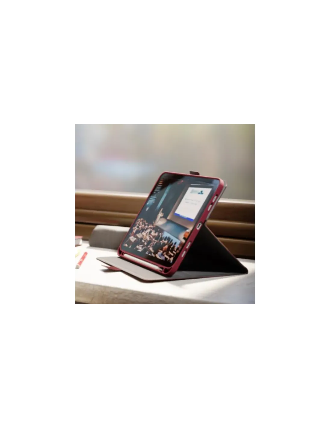 mentre la robusta linguetta magnetica mantiene il tuo iPad al sicuro all'interno della custodia.