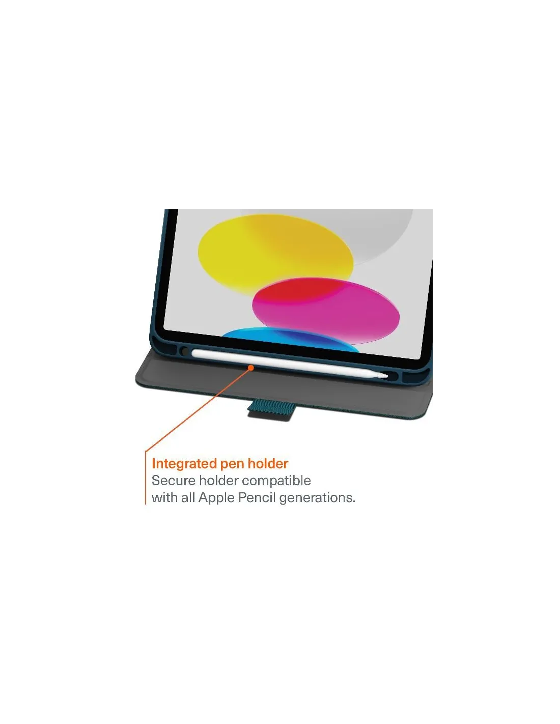 Una robusta linguetta magnetica protegge il tuo iPad quando non lo usi. Inoltre, lo spazio integrato per Apple Pencil ti consente di tenere i tuoi oggetti essenziali a portata di mano.