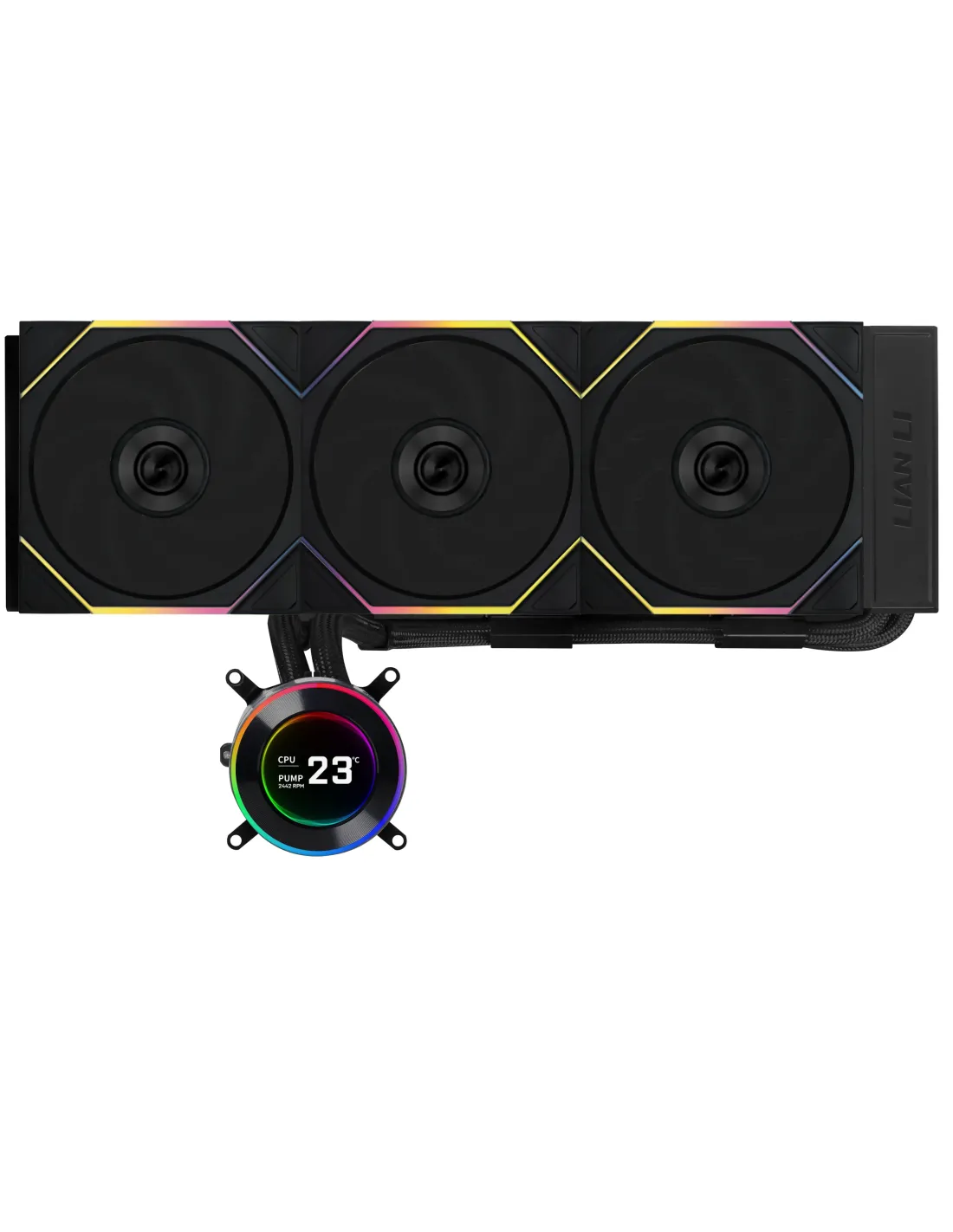 Lian Li GA II Hydroshift II LCD-C 360TL. Tipo: Raffreddatore di liquidi tutto in uno, Diametro del ventilatore: 12 cm, pressiore dell'aria minima: 3,97 mmH2O, Tipo di cuscinetto: Cuscinetto fluido dinamico (FDB). Colore del prodotto: Nero