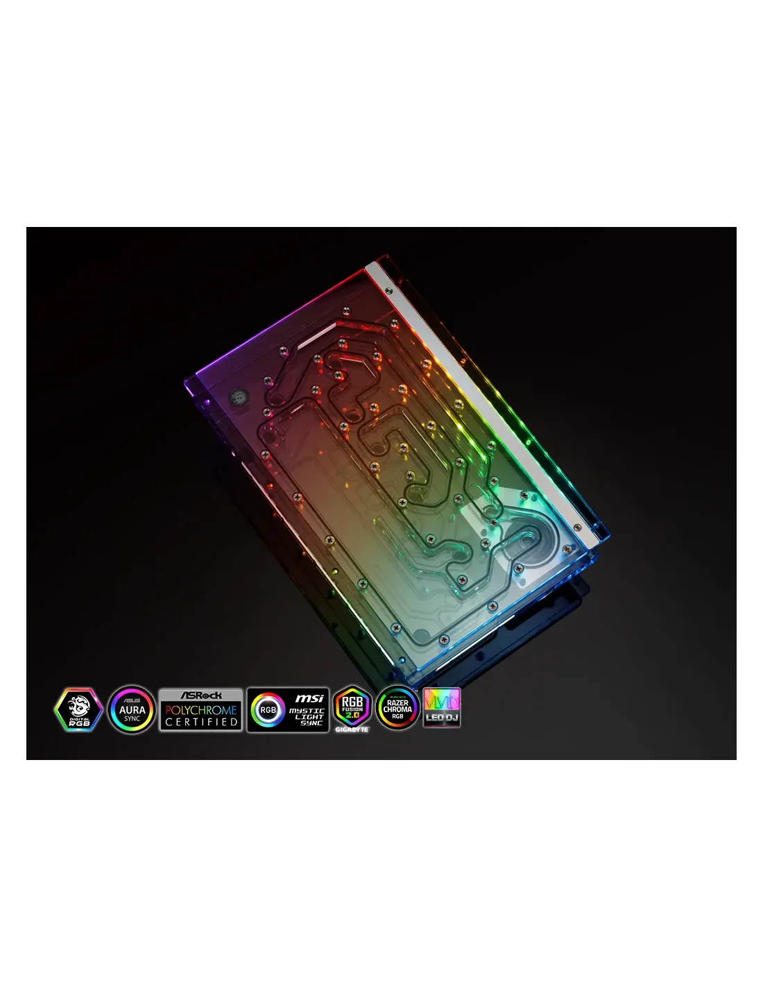 Bitspower BPTA-WDPO11DS-P5D. Tipo: Blocco di acqua, Colore del prodotto: Trasparente, Filo di collegamento: 1/4". Larghezza: 207 mm, Profondità: 317 mm, Altezza: 66,3 mm. Quantità per pacco: 1 pz. Potenza: 20 W, Tensione di ingresso AC: 12 V