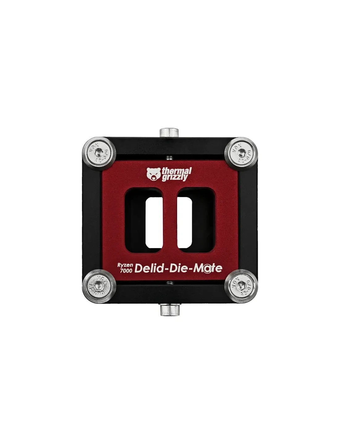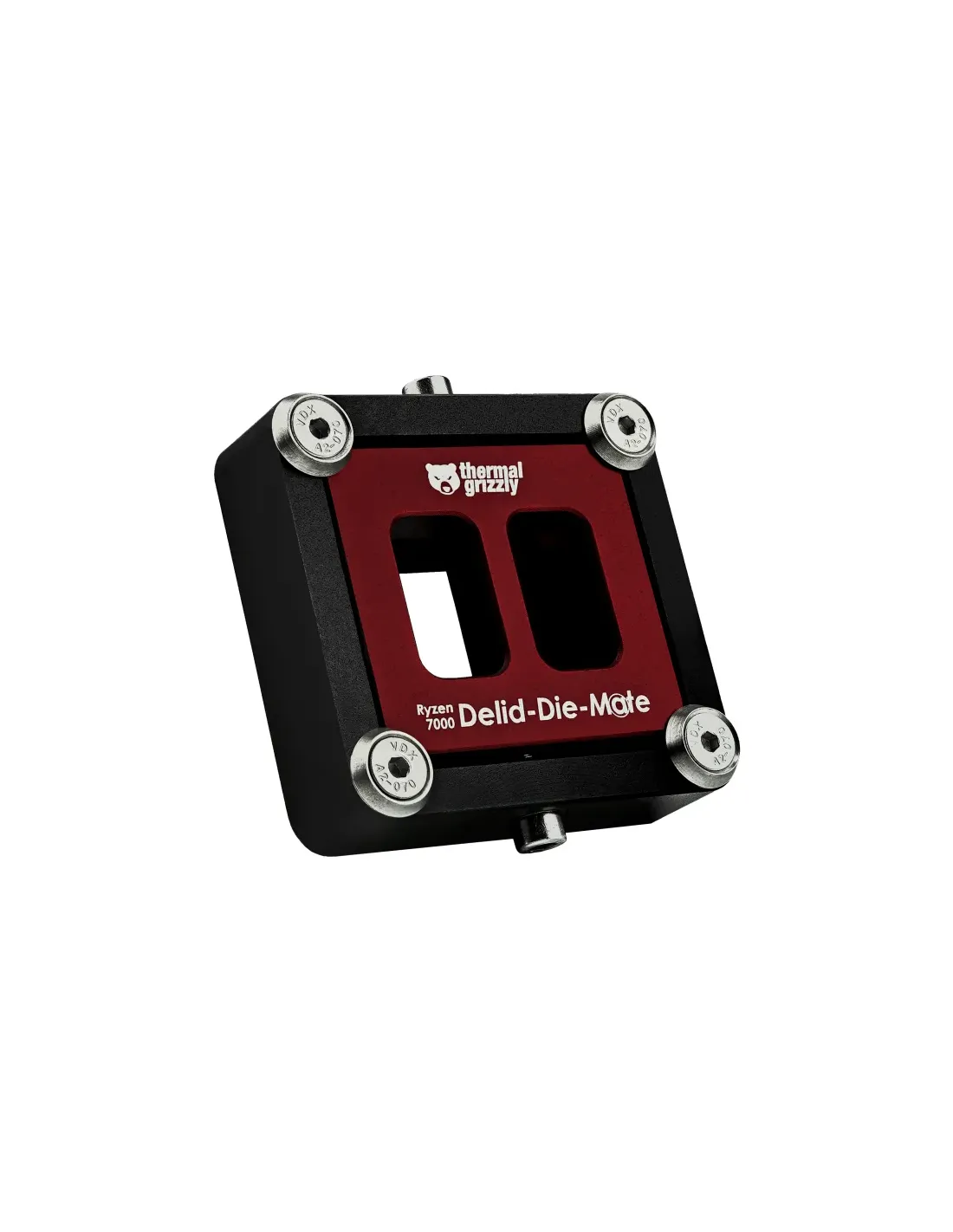 Thermal Grizzly Ryzen 7000 Delid-Die-Mate. Tipo: Strumento di rimozione del diffusore di calore, Materiali: Alluminio, Colore del prodotto: Nero, Rosso. Larghezza: 70 mm, Profondità: 74 mm, Altezza: 198 mm. Larghezza imballo: 110 mm, Profondità imballo: 95 mm, Altezza imballo: 40 mm