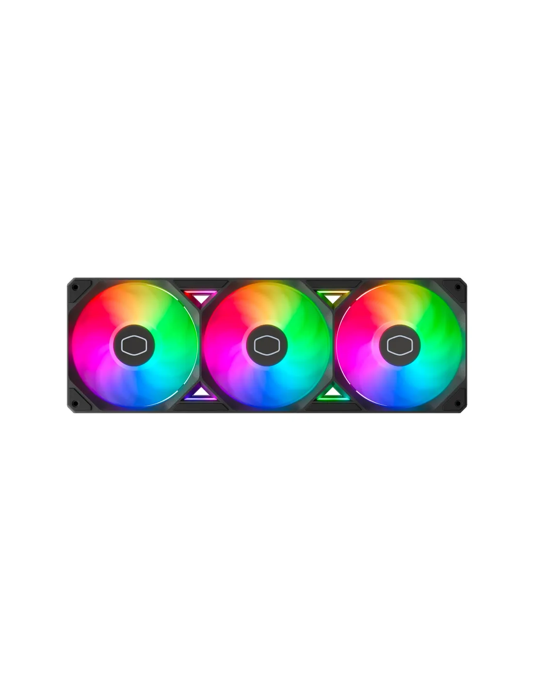 Cooler Master SickleFlow Edge 360 ARGB. Tipo: Ventilatore, Diametro del ventilatore: 12 cm, Velocità (minima) di rotazione: 690 Giri/min, Velocità (massima) di rotazione: 2500 Giri/min, Flusso d'aria: 322,8 m³/h, pressione dell'aria massima: 3,54 mmH2O, Tipo di cuscinetto: Loop Dynamic Bearing (LDB). Larghezza: 122 mm, Profondità: 361 mm, Altezza: 26,5 mm. Colore del prodotto: Nero