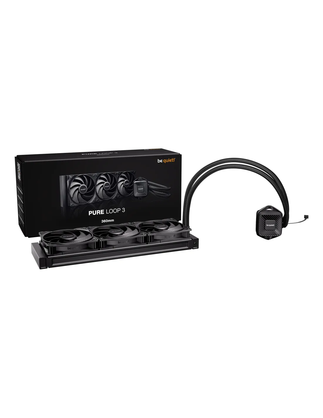 be quiet! PURE LOOP 3. Tipo: Raffreddatore di liquidi tutto in uno, Diametro del ventilatore: 12 cm, Flusso d'aria: 101,2 m³/h, pressione dell'aria massima: 2,41 mmH2O. Altezza: 52 mm. Colore del prodotto: Nero