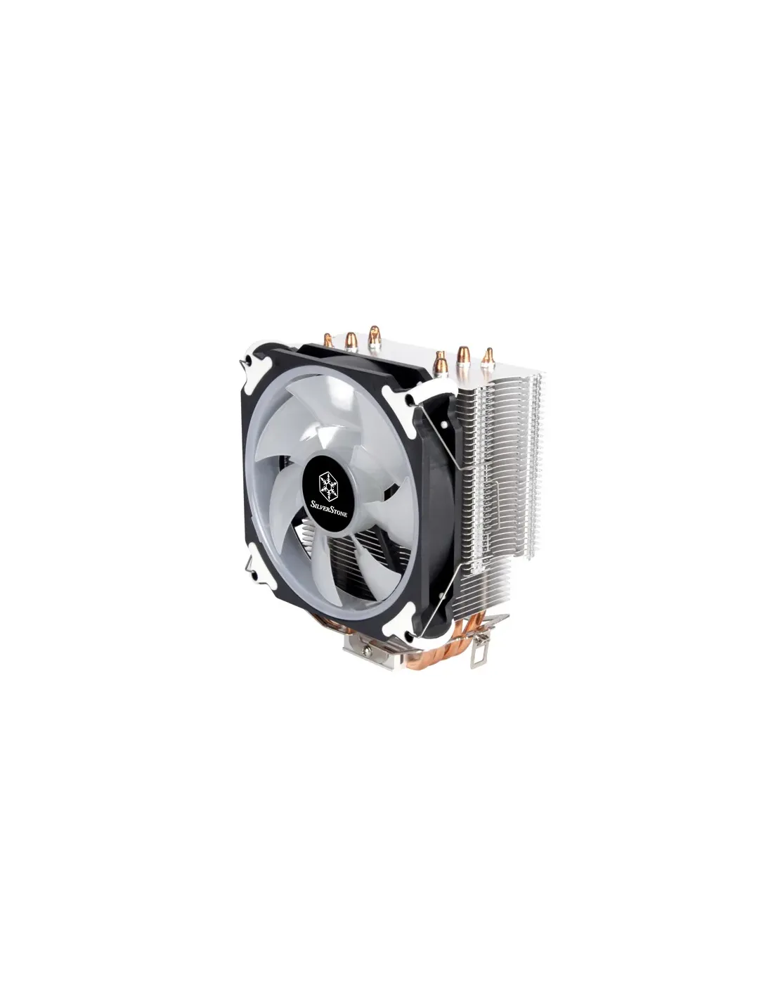 Silverstone AR12 RGB. Tipo: Refrigeratore, Diametro del ventilatore: 12 cm, Velocità (minima) di rotazione: 700 Giri/min, Velocità (massima) di rotazione: 2200 Giri/min, pressione dell'aria massima: 2,7 mmH2O, Tipo di cuscinetto: Idraulico. Larghezza: 128 mm, Profondità: 75 mm, Altezza: 154 mm. Colore del prodotto: Nero, Acciaio inox, Bianco
