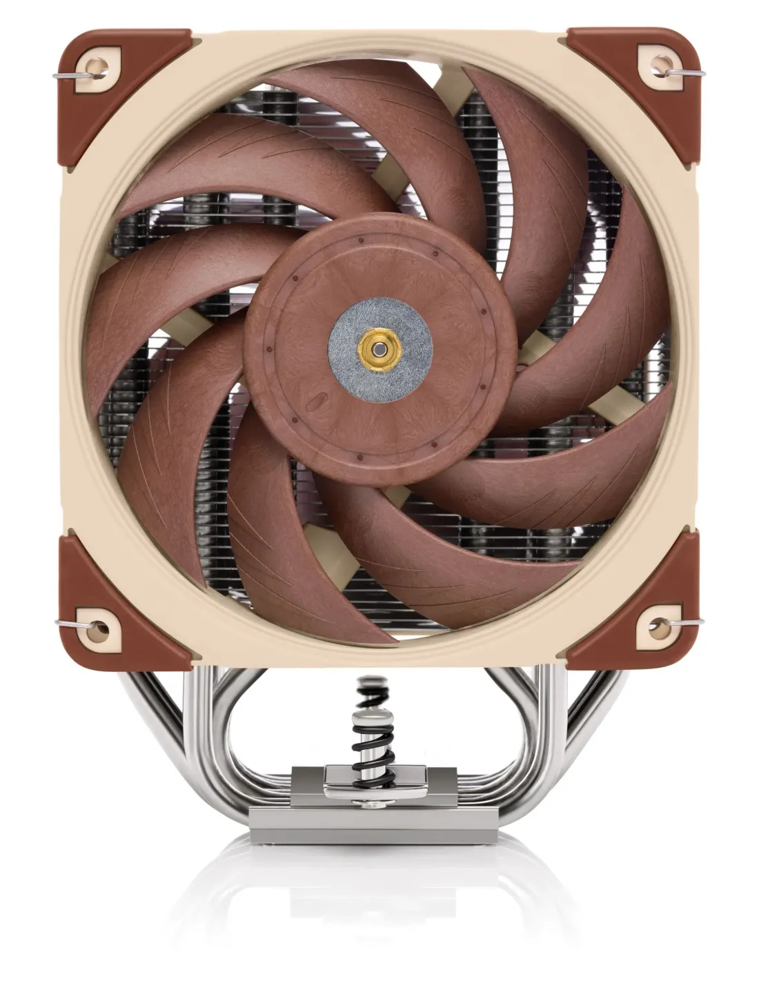 Noctua NH-U12A. Tipo: Refrigeratore, Diametro del ventilatore: 12 cm, Velocità (minima) di rotazione: 450 Giri/min, Velocità (massima) di rotazione: 2000 Giri/min, Flusso d'aria: 102,1 m³/h, pressiore dell'aria minima: 1,65 mmH2O, pressione dell'aria massima: 2,34 mmH2O, Tipo di cuscinetto: Self-Stabilising Oil-pressure (SSO) bearing. Larghezza: 125 mm, Profondità: 112 mm, Altezza: 158 mm. Colore del prodotto: Beige, Marrone, Argento