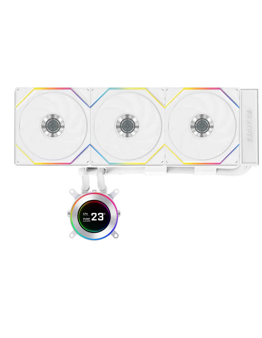 Lian Li GA II Hydroshift II LCD-C 360TL. Tipo: Raffreddatore di liquidi tutto in uno, Diametro del ventilatore: 12 cm, pressiore dell'aria minima: 3,97 mmH2O, Tipo di cuscinetto: Cuscinetto fluido dinamico (FDB). Colore del prodotto: Bianco