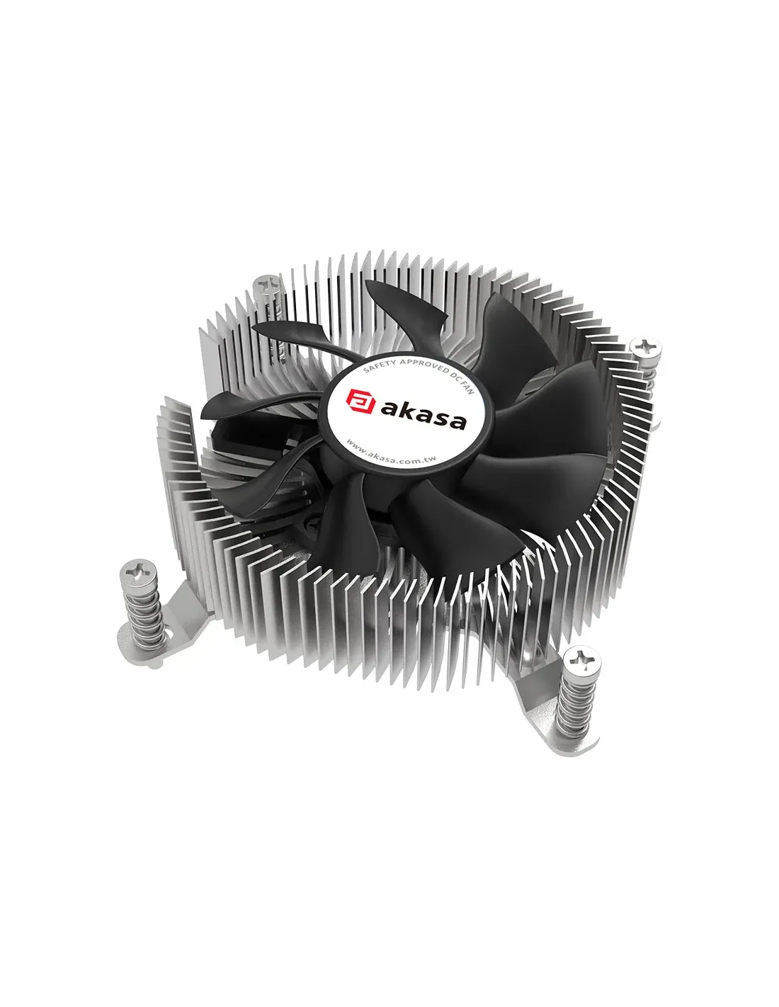 Akasa AK-CC6616HP01. Tipo: Raffreddatore d'aria, Diametro del ventilatore: 7,5 cm, Velocità (minima) di rotazione: 60 Giri/min, Velocità (massima) di rotazione: 3000 Giri/min, pressione dell'aria massima: 3,76 mmH2O, Tipo di cuscinetto: HDB (Hydro Dynamic Bearing). Voltaggio: 12 V. Larghezza: 87,2 mm, Profondità: 85,2 mm, Altezza: 29,9 mm. Colore del prodotto: Alluminio, Nero