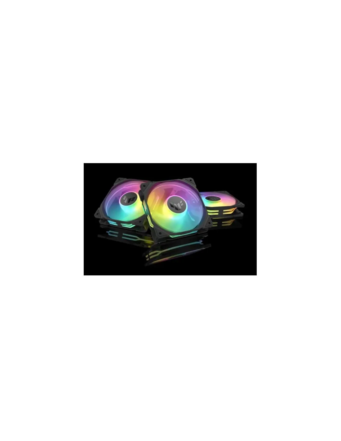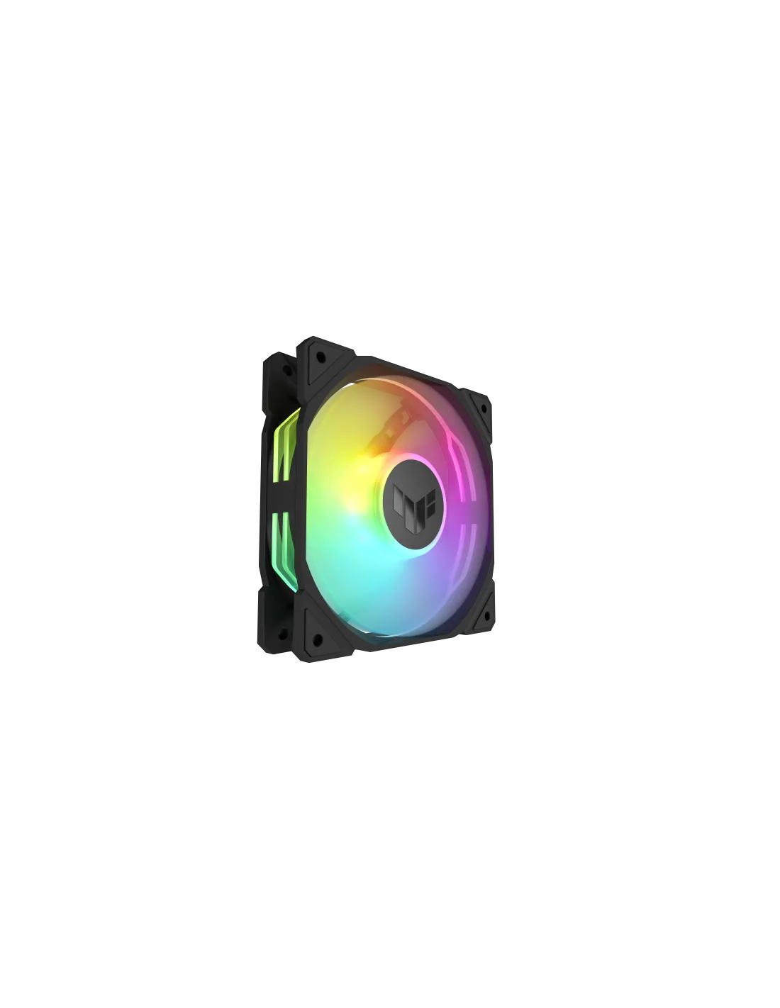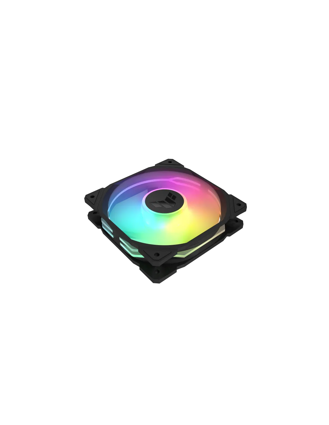 La ventola per chassis TUF Gaming TR120 ARGB a pale invertite è caratterizzata da un'elevata pressione statica e da prestazioni di flusso d'aria con schemi di illuminazione personalizzati.