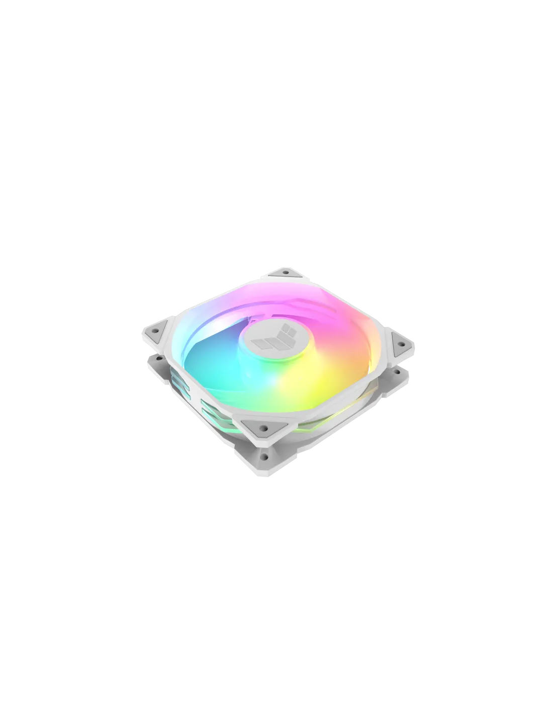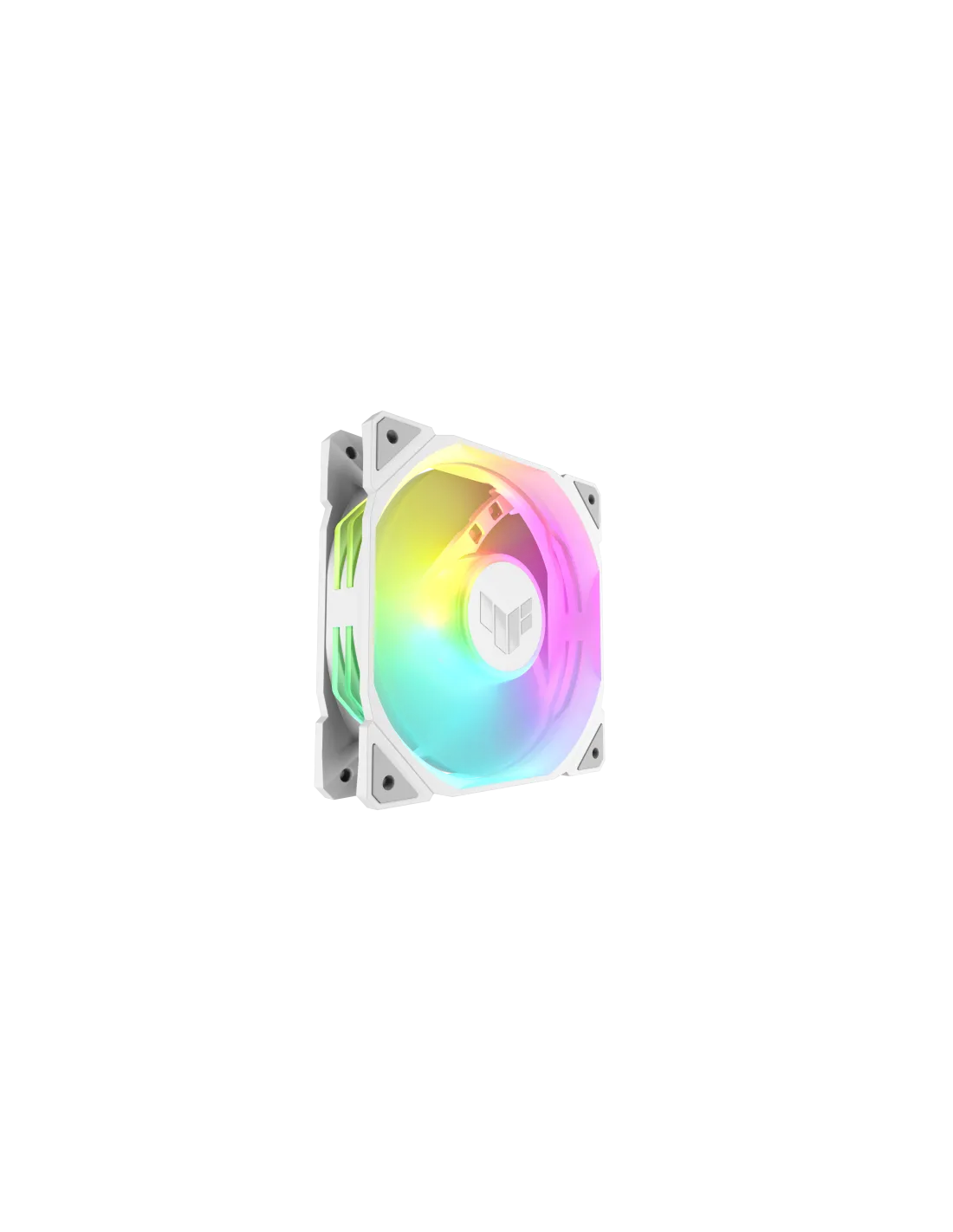 La ventola per chassis TUF Gaming TR120 ARGB è caratterizzata da un'elevata pressione statica e da un flusso d'aria con illuminazione personalizzata.
