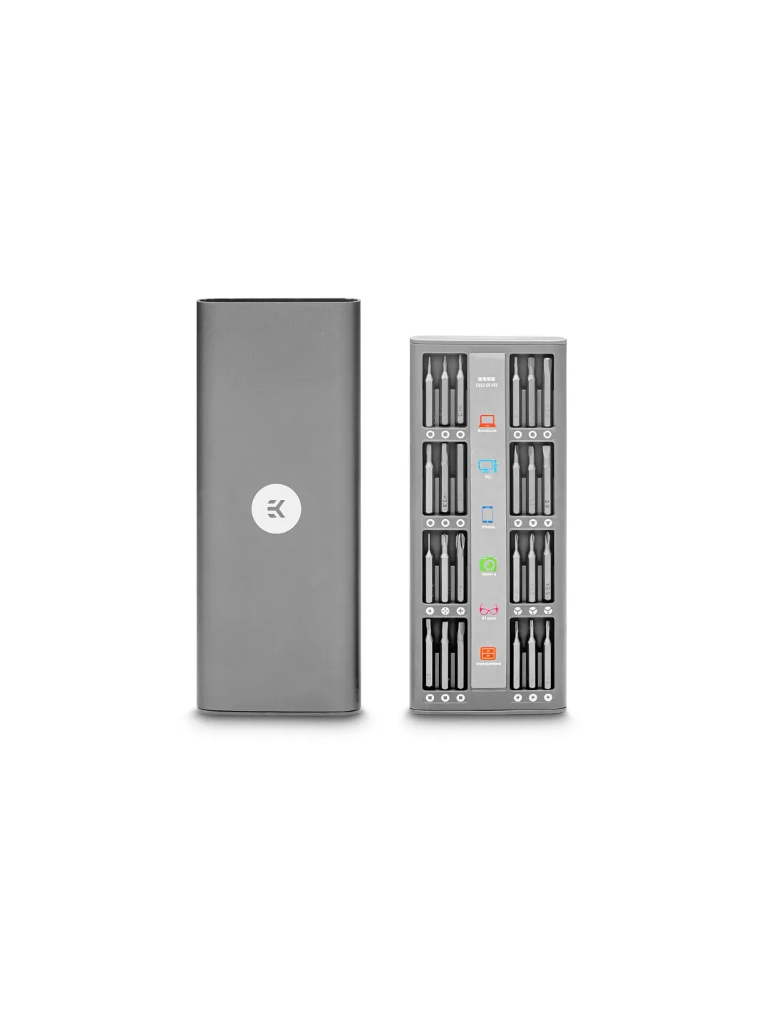 | Cacciaviti/punte incluse | Esadecimale (metrico), Pentagono, Phillips, SIM, Torx di sicurezza, Fessura, Quadrato, Torcia, Con tre ali, Triangolo, U form |