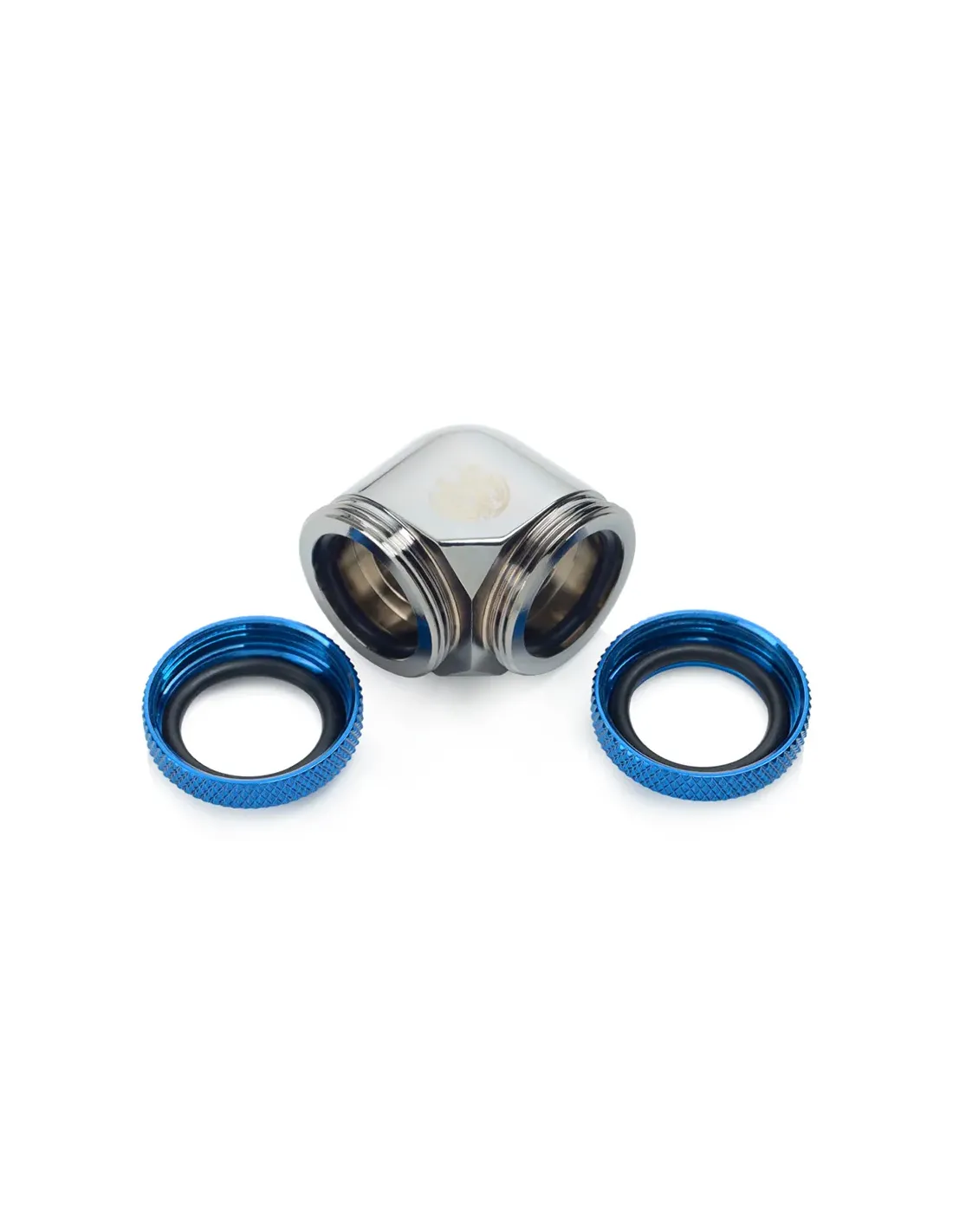 Bitspower BP-BSE90DML16-RBL. Tipo: Adattatore, Materiali: Ottone, Colore del prodotto: Blu, Argento. Diametro: 1,6 cm. Quantità per pacco: 1 pz