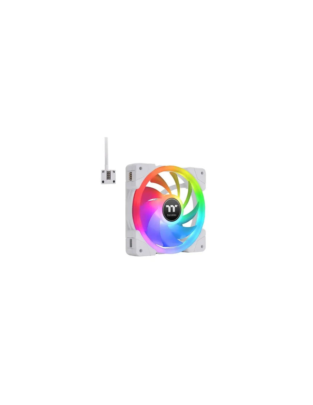 Thermaltake SWAFAN EX12. Tipo: Ventilatore, Diametro del ventilatore: 12 cm, Velocità (minima) di rotazione: 500 Giri/min, Velocità (massima) di rotazione: 2000 Giri/min, pressione dell'aria massima: 2,39 mmH2O. Voltaggio: 12 V. Larghezza: 120 mm, Profondità: 120 mm, Altezza: 25 mm. Colore del prodotto: Bianco