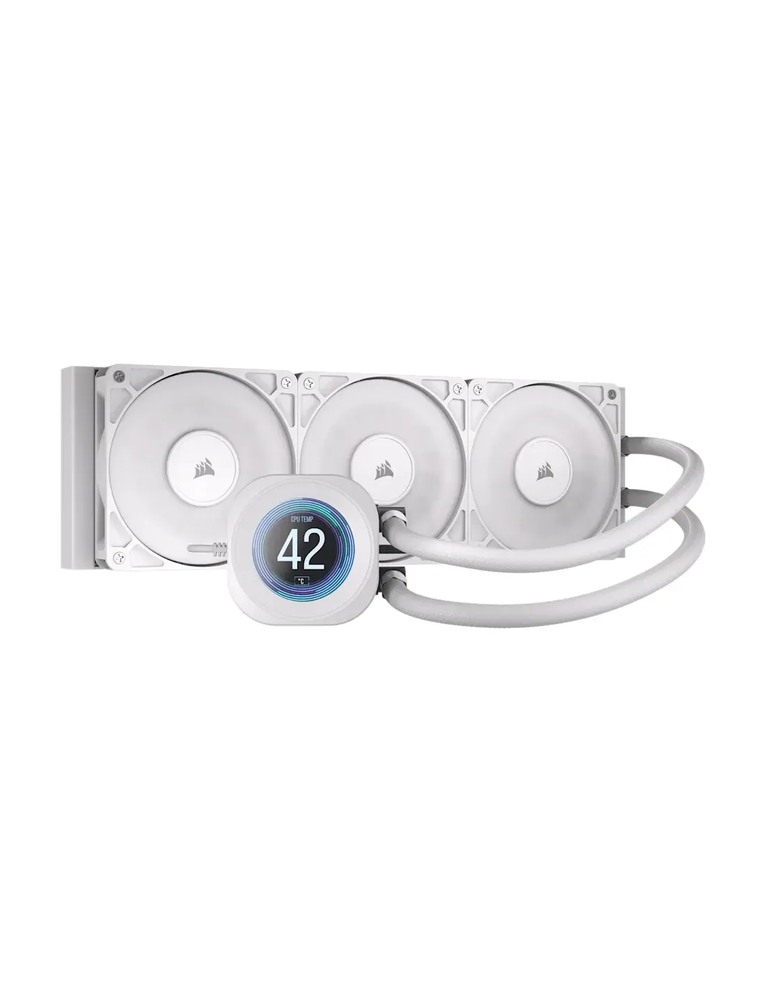 Corsair Nautilus 360 RS. Tipo: Raffreddatore di liquidi tutto in uno, Diametro del ventilatore: 12 cm, Velocità (massima) di rotazione: 2100 Giri/min, pressiore dell'aria minima: 0,2 mmH2O, pressione dell'aria massima: 4,15 mmH2O. Larghezza: 125 mm, Profondità: 396 mm, Altezza: 125 mm. Colore del prodotto: Bianco