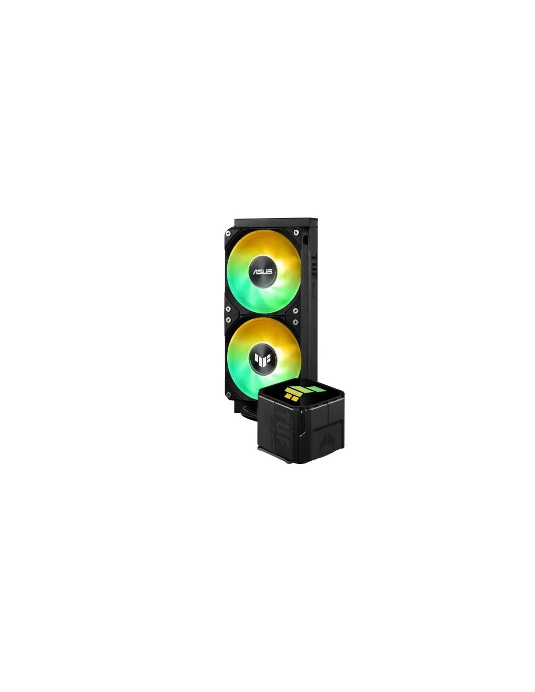 TUF Gaming LC III 240 ARGB, sistema di raffreddamento a liquido per CPU all-in-one con ventole preinstallate e integrate, progettate per un flusso d'aria elevato e una pressione statica elevata; pompa efficiente per garantire che la CPU mantenga temperature operative ottimali