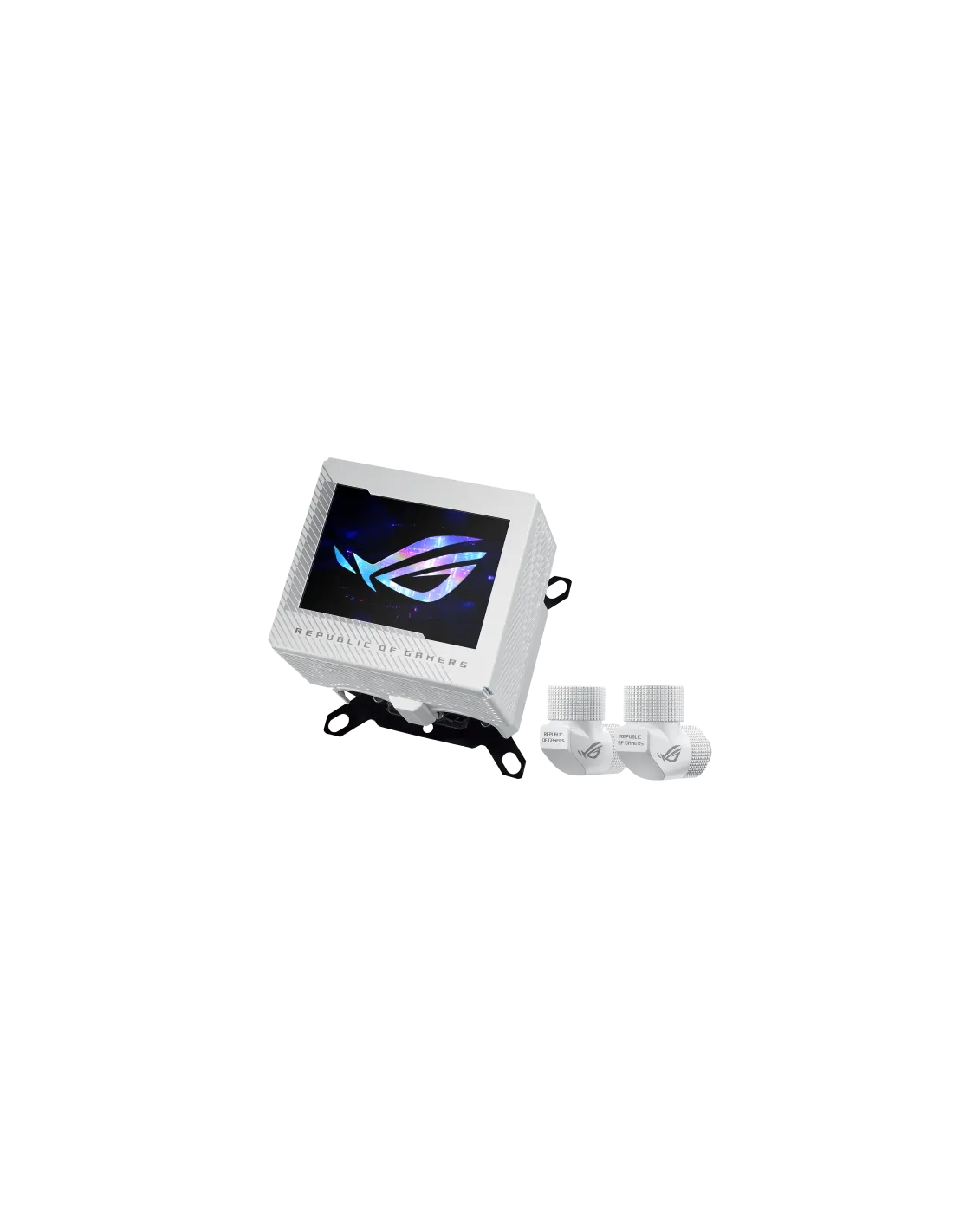 ROG Ryujin III WB White Edition fonde perfettamente tecnologie di raffreddamento all'avanguardia con un'estetica accattivante e personalizzante. Vanta un Water Block Asetek con 178 alette di micro-raffreddamento e una piastra fredda in lega di rame per un'efficienza termica eccezionale, che aiuta a spingere le prestazioni delle più recenti CPU Intel e AMD. La ventola incorporata migliora il flusso d'aria verso il VRM della scheda madre, mentre il display LCD da 3,5 pollici offre opzioni di personalizzazione illimitate, consentendo di visualizzare informazioni sull'hardware o animazioni GIF personalizzate. Il design del raffreddamento ad acqua ad anello aperto del Ryujin III WB consente di creare una struttura unica che riflette perfettamente il vostro stile personale.