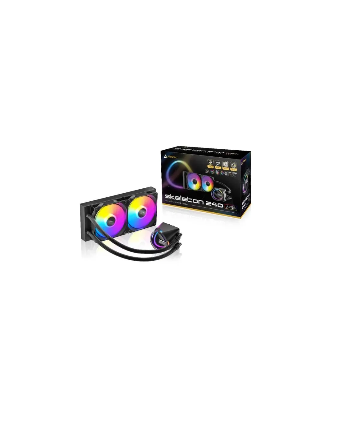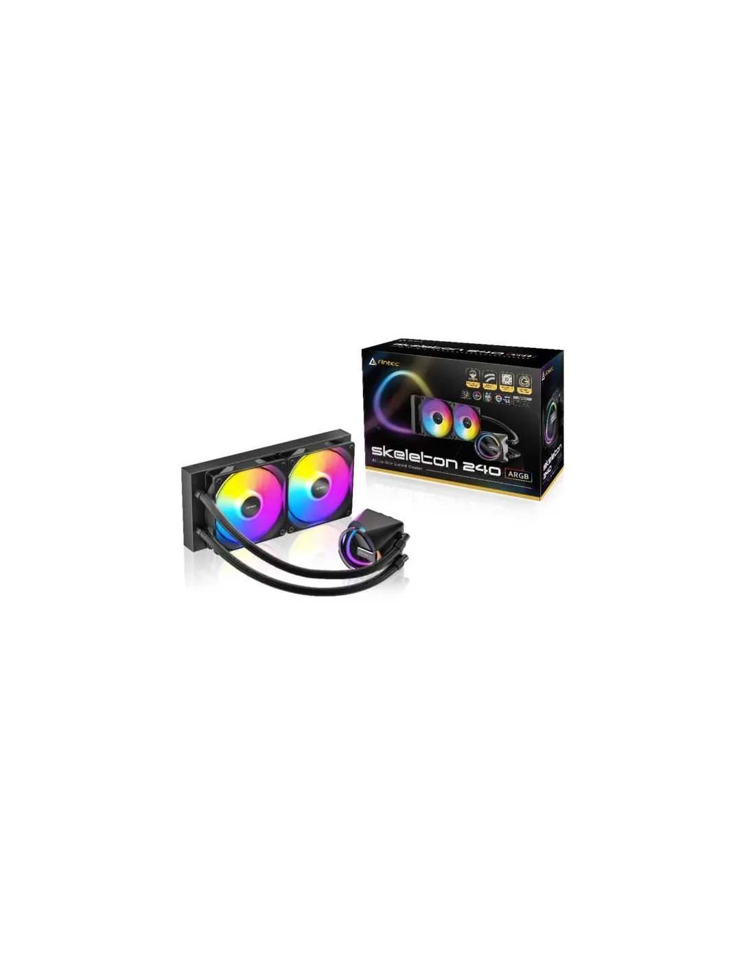 Cooler a liquido AIO Antec SKELETON 240 ARGB offre prestazioni di raffreddamento eccezionali e allo stesso tempo crea effetti luminosi abbaglianti da più angolazioni, aggiungendo uno stile chic alla tua configurazione.