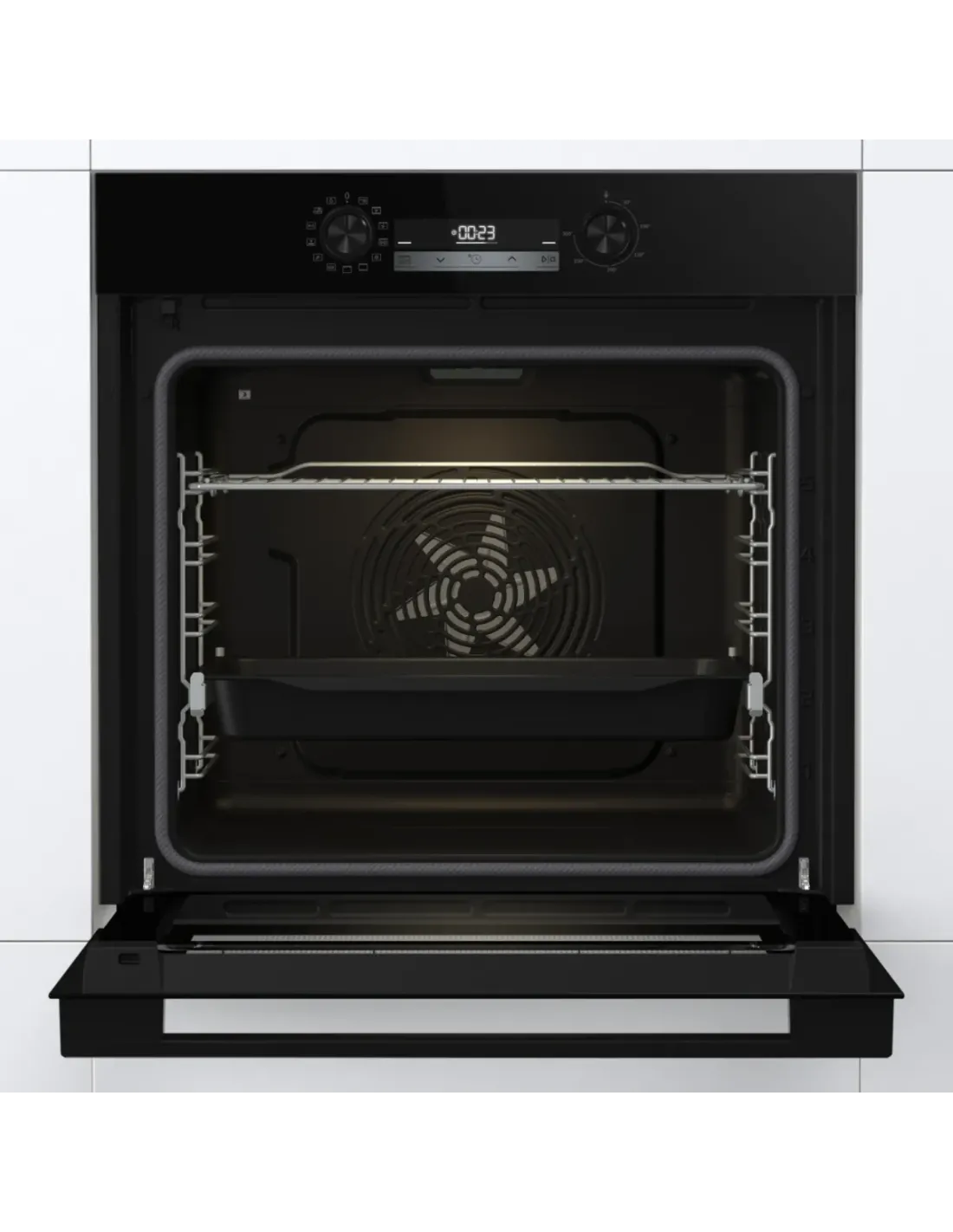 Hisense BI64213SEPBG. Dimensione del forno: Largo, Tipo di forno: Forno elettrico, Capacità interna forno totale: 77 L. Posizionamento dell'apparecchio: Da incasso, Colore del prodotto: Nero, Tipo di controllo: Manopola, Touch. Classe efficienza energetica: A+, Consumo energetico (convenzionale): 1,03 kWh, Consumo energetico (convezione forzata): 0,71 kWh. Larghezza del compartimento: 56,4 cm, Profondità del compartimento: 55 cm, Altezza del compartimento: 60 cm. Larghezza imballo: 620 mm, Profondità imballo: 675 mm, Altezza imballo: 660 mm