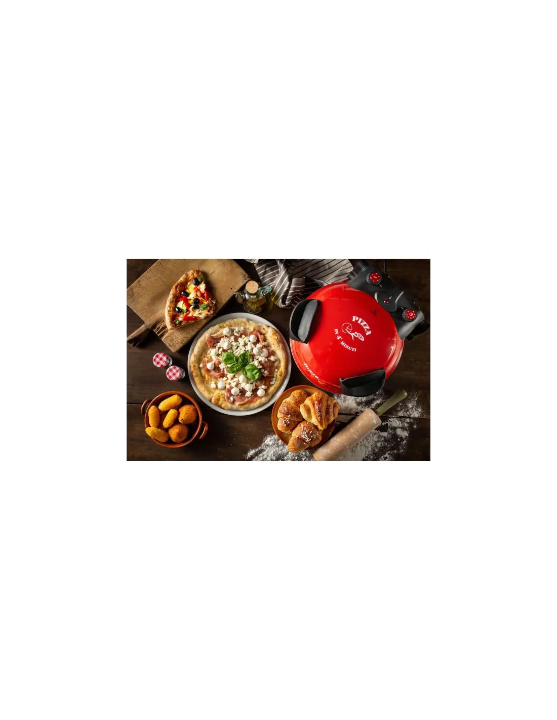 ArieteIl forno pizza di Ariete sarà l’alleato in cucina di tutti gli amanti della pizza. Il prodotto migliora le sue prestazioni con una piastra in pietra refrattaria di alta qualità dal diametro di 32cm che permette di cuocere e/o riscaldare pizza e focacce a cinque livelli di cottura, fino a una temperatura massima di 400 gradi. La pietra refrattaria è dotata di un trattamento trasparente antiaderente che rende la pietra refrattaria super resistente a macchie e residui e permette di mantenere la qualità della pietra nel tempo.Il fornetto pizza con la cottura veloce ad alta temperatura permette di replicare lo stesso metodo dei forni a legna e in soli 4 minuti si ottiene una cottura perfetta per la pizza fatta in casa, e 2 minuti per la pizza surgelata. Gustare la pizza in casa non è mai stato così semplice e veloce. Provare per credere!