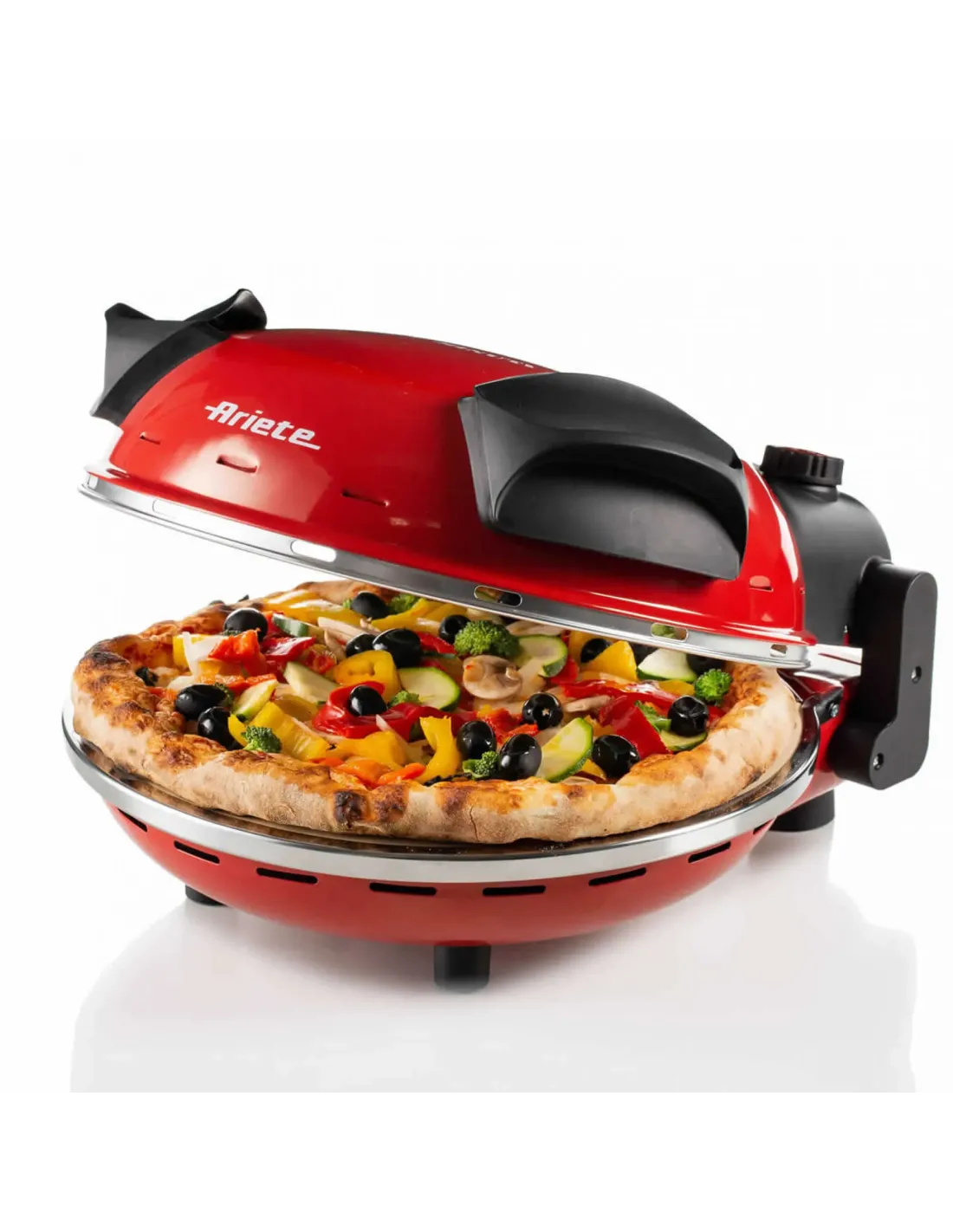 ArieteAriete 909 Forno Pizza - Pizza in 4 minuti - Piastra in pietra refrattaria con trattamento antiaderente - Temperatura max 400° - 1200 Watt - Timer 30’, 1 pizza(e), Rosso, Rosso, 32 cm, Meccanico, 400 °C