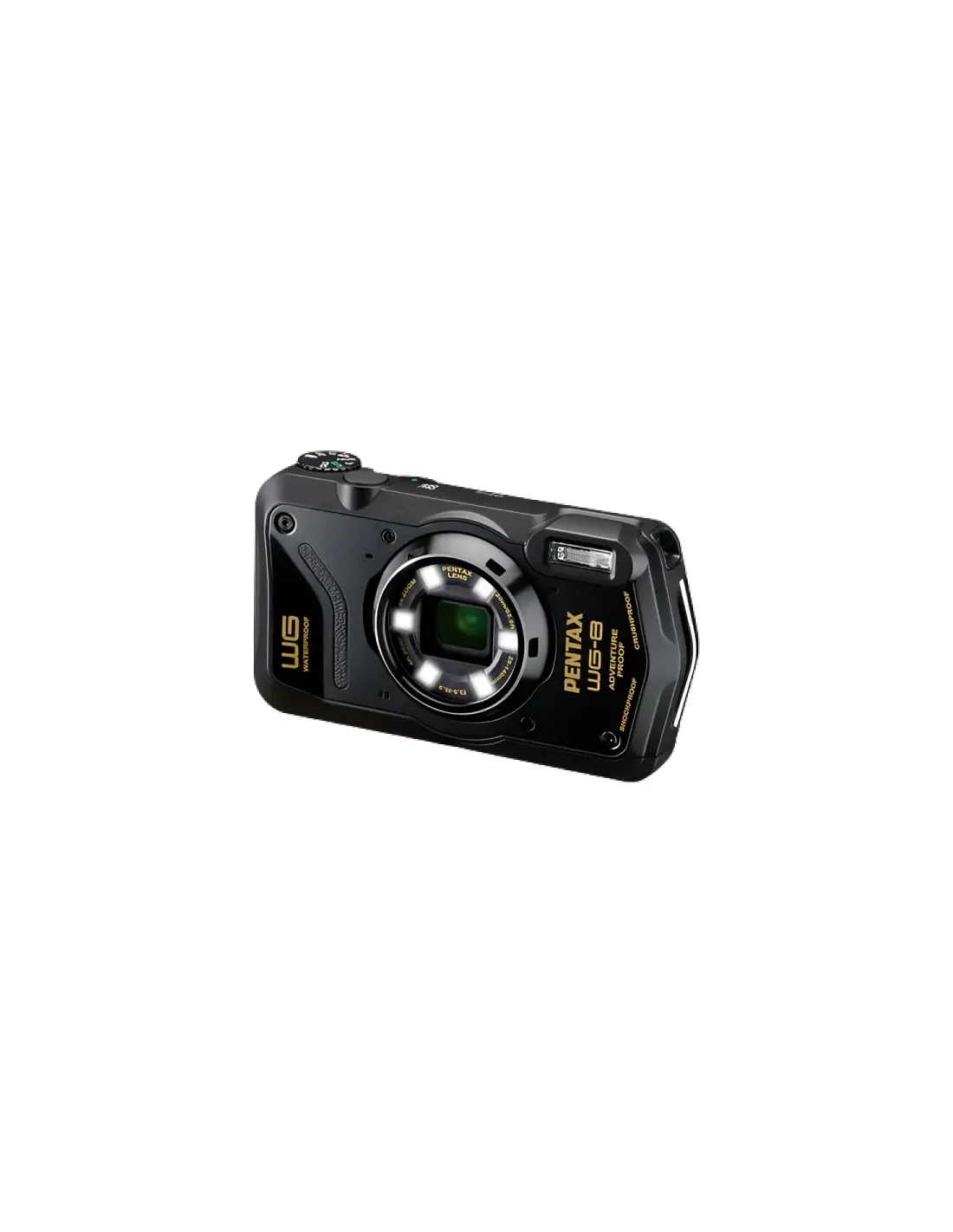 Pentax WG-8. Tipologia fotocamera: Fotocamera compatta, Megapixel: 20 MP, Dimensione del sensore di immagine: 1/2.3", Tipo sensore: CMOS. Sensibilità ISO (max): 64000. Zoom ottico: 5x, Zoom digitale: 8,1x, Lunghezza focale: 5 - 25 mm. Velocità massima dell'otturatore della fotocamera: 1/4000 s. Tipologia HD: 4K Ultra HD, Risoluzione massima video: 3840 x 2160 Pixel. Dimensioni diagonale schermo: 7,62 cm (3"). Peso: 215 g. Colore del prodotto: Verde