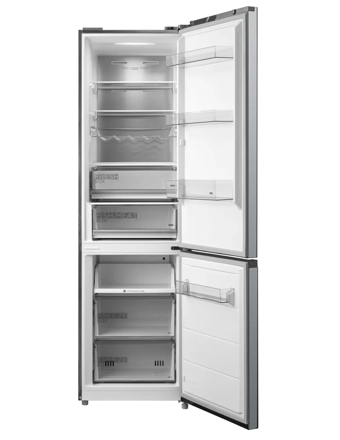 Midea MDRB521MGA46O. Capacità netta totale: 378 L. Cerniera porta: Destra, Tipo di display: LED. Classe climatica: SN-ST, Emissione acustica: 29 dB. Capacità netta frigorifero: 256 L, No Frost (frigorifero), Luce interna, Numero di ripiani frigorifero: 2. Capacità netta congelatore: 122 L, Capacità di congelamento: 8,5 kg/24h, No Frost (congelatore). Classe efficienza energetica: A, Consumo energetico annuo: 113 kWh. Colore del prodotto: Acciaio inox