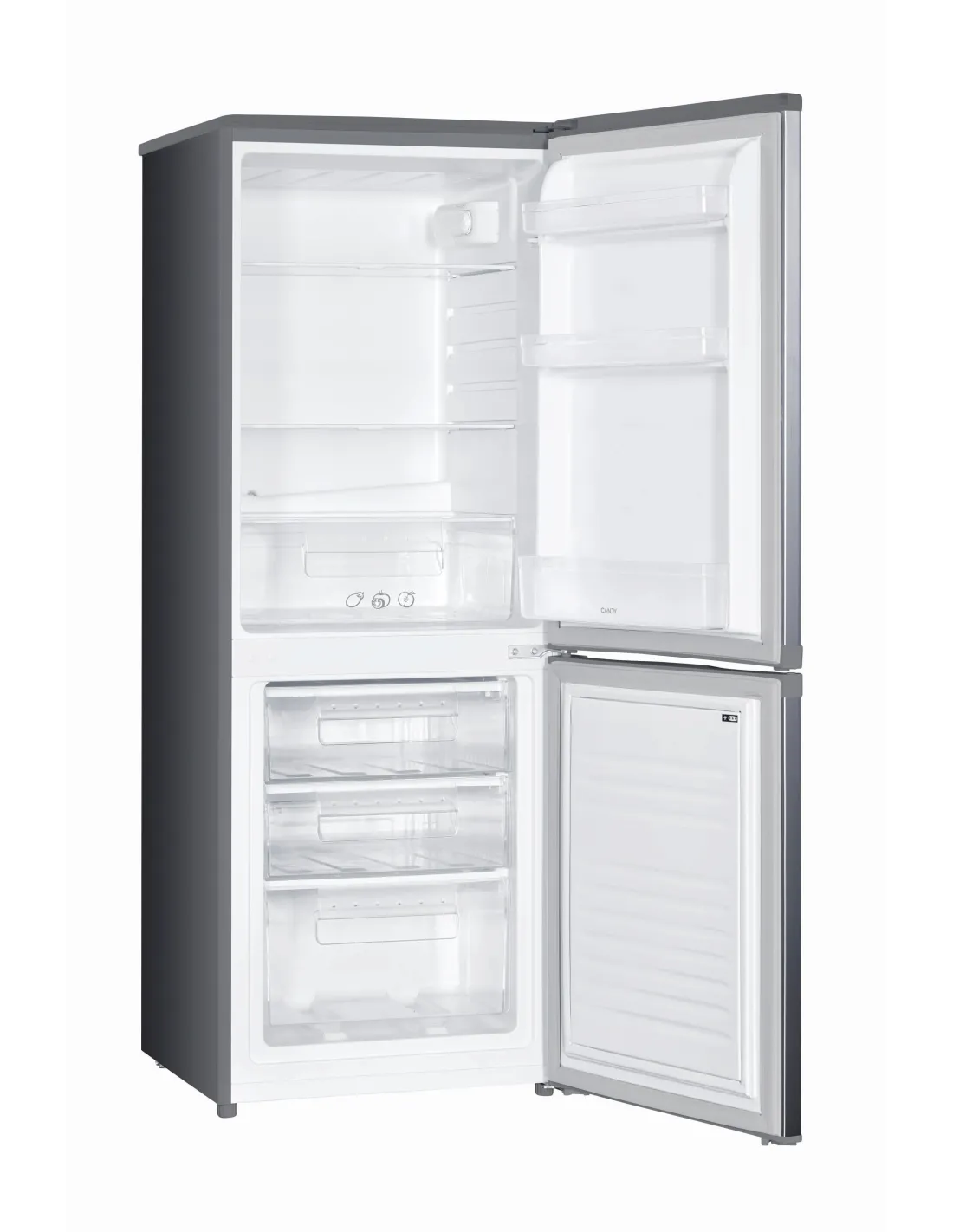 Candy CHCS 514EX. Capacità netta totale: 207 L. Cerniera porta: Destra. Emissione acustica: 40 dB. Capacità netta frigorifero: 138 L, Luce interna, Numero di ripiani frigorifero: 3, Numero di cassetti per verdura: 1. Capacità netta congelatore: 69 L, Capacità di congelamento: 3,2 kg/24h. Classe efficienza energetica: E, Consumo energetico annuo: 205 kWh. Colore del prodotto: Acciaio inox