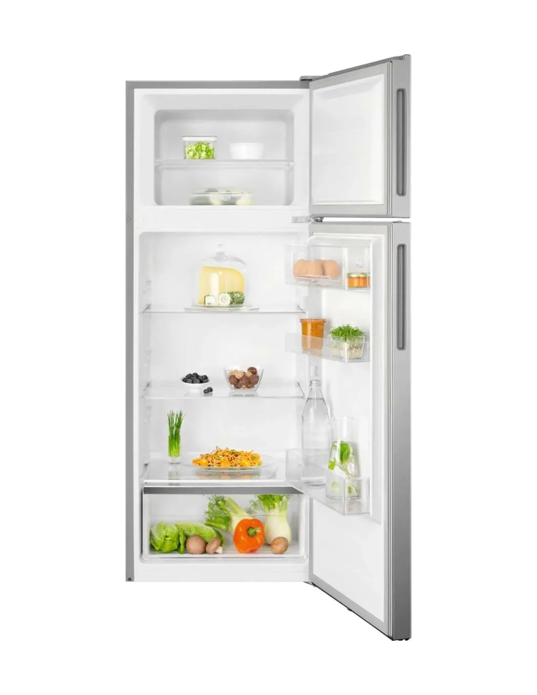 Electrolux FRIGORIFERO DOPPIA PORTA STATIC LOW FROST CLASSE E LTB1AE24U0. Capacità netta totale: 206 L. Cerniera porta: Destra, Tipo di display: LCD. Classe climatica: SN-ST, Emissione acustica: 39 dB. Capacità netta frigorifero: 165 L, Luce interna, Numero di ripiani frigorifero: 3, Numero di cassetti per verdura: 1. Capacità netta congelatore: 41 L, Capacità di congelamento: 2 kg/24h. Classe efficienza energetica: E, Consumo energetico annuo: 177 kWh. Colore del prodotto: Argento