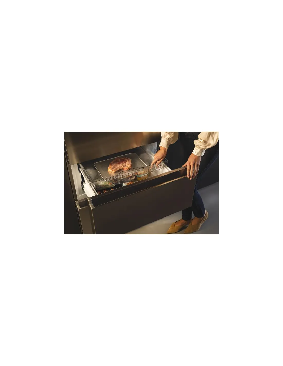 I cassetti Direct Access non solo ti offrono un accesso senza sforzi agli alimenti congelati, ma ti offrono anche una visuale notevolmente migliorata del contenuto del tuo freezer rispetto a una normale porta con cerniera. Inoltre, il loro design ergonomico impedisce all'aria fredda di fuoriuscire quando le porte sono aperte, aiutandoti a risparmiare energia fino al 30%*. *Come certificato da VDE N° ID.40048641
