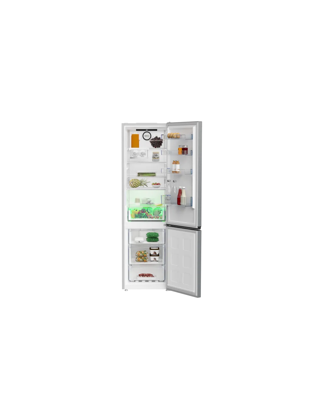 Beko B5RCNE405HXB: Frigorifero Combinato Beyond, Total No-Frost, 59.5 cm, 355 L, SN-T, 6 kg/24h, D, Compartimento zona fresca, Metallico