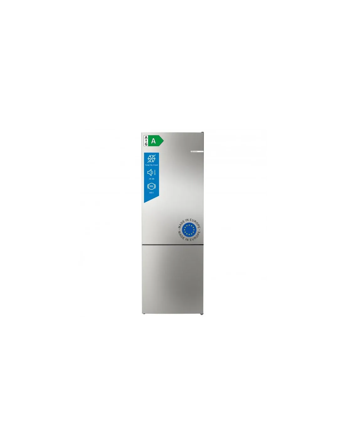 Bosch Serie 4 KGN492IAF Frigorifero Combinato da libera installazione 203 x 70 cm Acciaio anti-impronta Classe A. Capacità netta totale: 440 L. Cerniera porta: Destra. Classe climatica: SN-T, Emissione acustica: 29 dB. Capacità netta frigorifero: 311 L, No Frost (frigorifero), Sistema Multi-Airflow (frigorifero), Luce interna. Capacità netta congelatore: 129 L, Capacità di congelamento: 11,5 kg/24h, No Frost (congelatore). Compartimento zona fresca. Classe efficienza energetica: A, Consumo energetico annuo: 122 kWh. Colore del prodotto: Acciaio inox