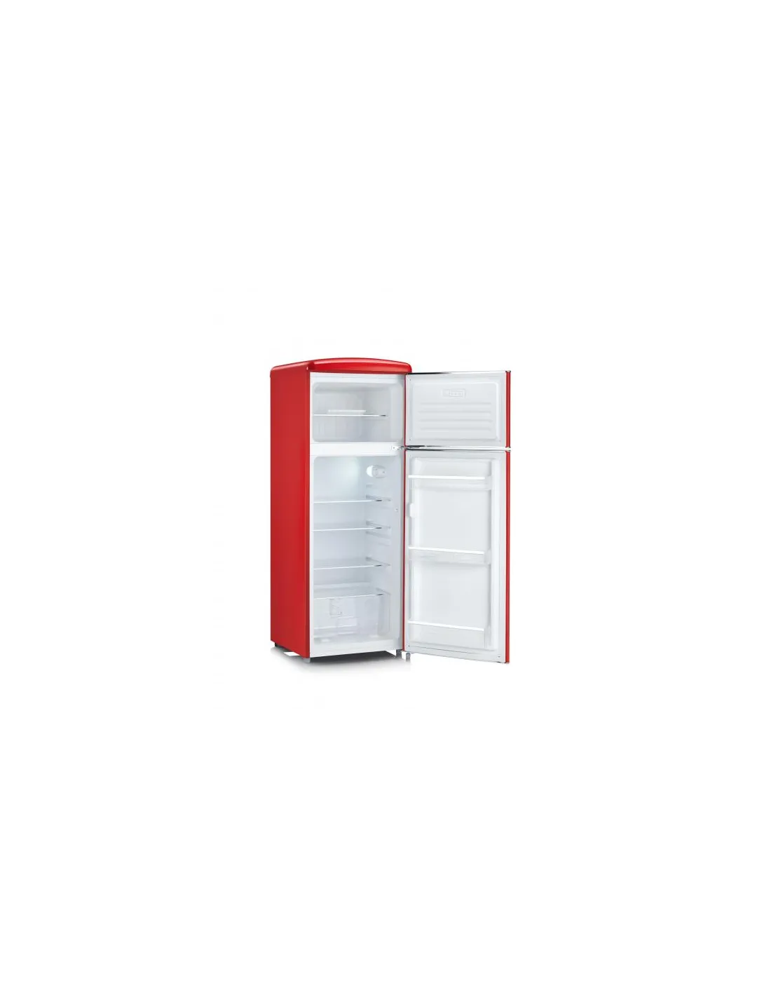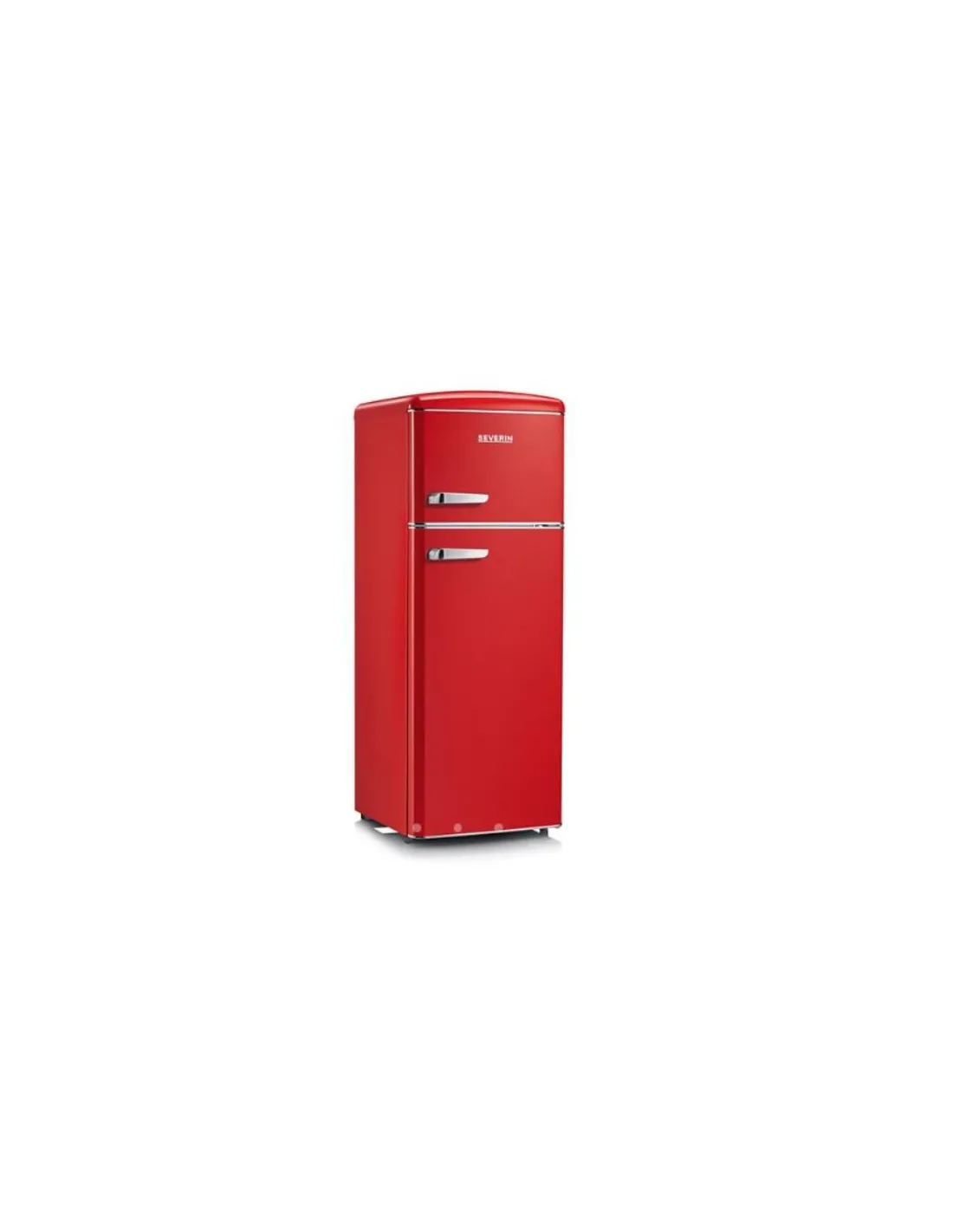 Severin RKG 8930. Capacità netta totale: 206 L. Cerniera porta: Destra. Classe climatica: N-ST, Emissione acustica: 39 dB. Capacità netta frigorifero: 162 L, Luce interna, Numero di ripiani frigorifero: 4, Numero di cassetti per verdura: 1. Capacità netta congelatore: 44 L, Capacità di congelamento: 2,5 kg/24h. Classe efficienza energetica: E, Consumo energetico annuo: 180 kWh. Colore del prodotto: Rosso