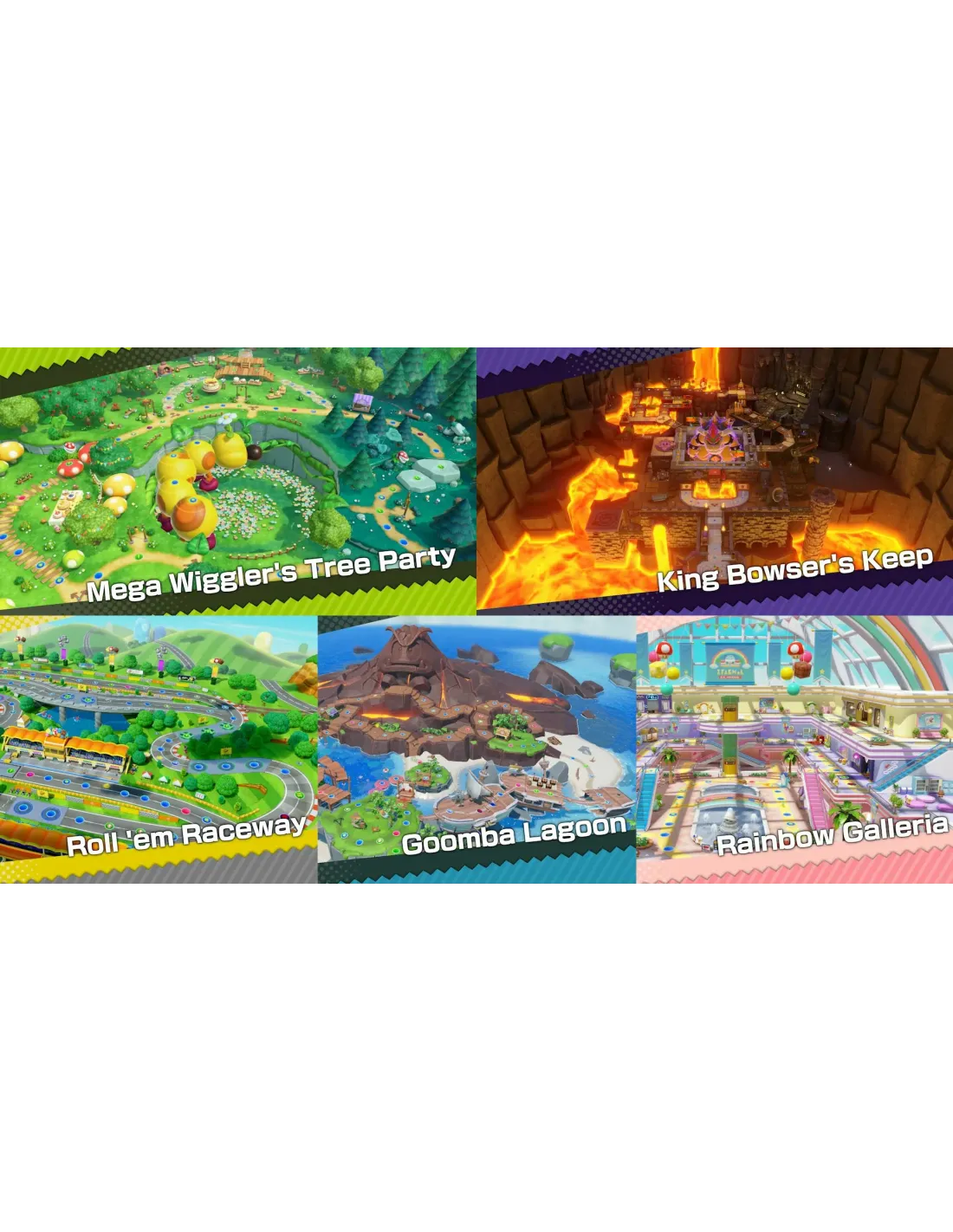 Mario e amici si trasferiscono in un arcipelago paradisiaco per il nuovo capitolo della serie Mario Party. Gioca su cinque nuovi tabelloni e scopri le scale mobili della Galleria arcobaleno, il tracciato del Circuito Giradado e l’Isola Goomba con il suo vulcano attivo, per citarne alcuni. Faranno il loro ritorno anche due tabelloni apparsi in capitoli precedenti. Il gioco includerà più di 110 minigiochi, la selezione più ampia nella storia della serie Mario Party, con sfide all’insegna dell’azione, gare d’ingegno e minigiochi con comandi di movimento. E non è tutto: fino a 20 giocatori possono sfidarsi online nella modalità Bowserathlon.