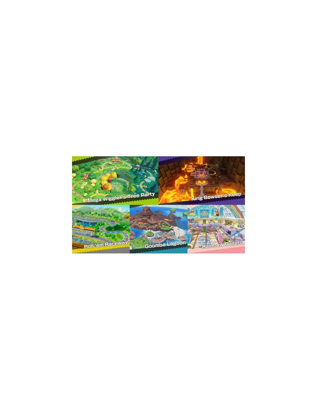 Gioca su cinque nuovi tabelloni e scopri le scale mobili della Galleria arcobaleno, il tracciato del Circuito Giradado e l’Isola Goomba con il suo vulcano attivo, per citarne alcuni. Faranno il loro ritorno anche due tabelloni apparsi in capitoli precedenti.