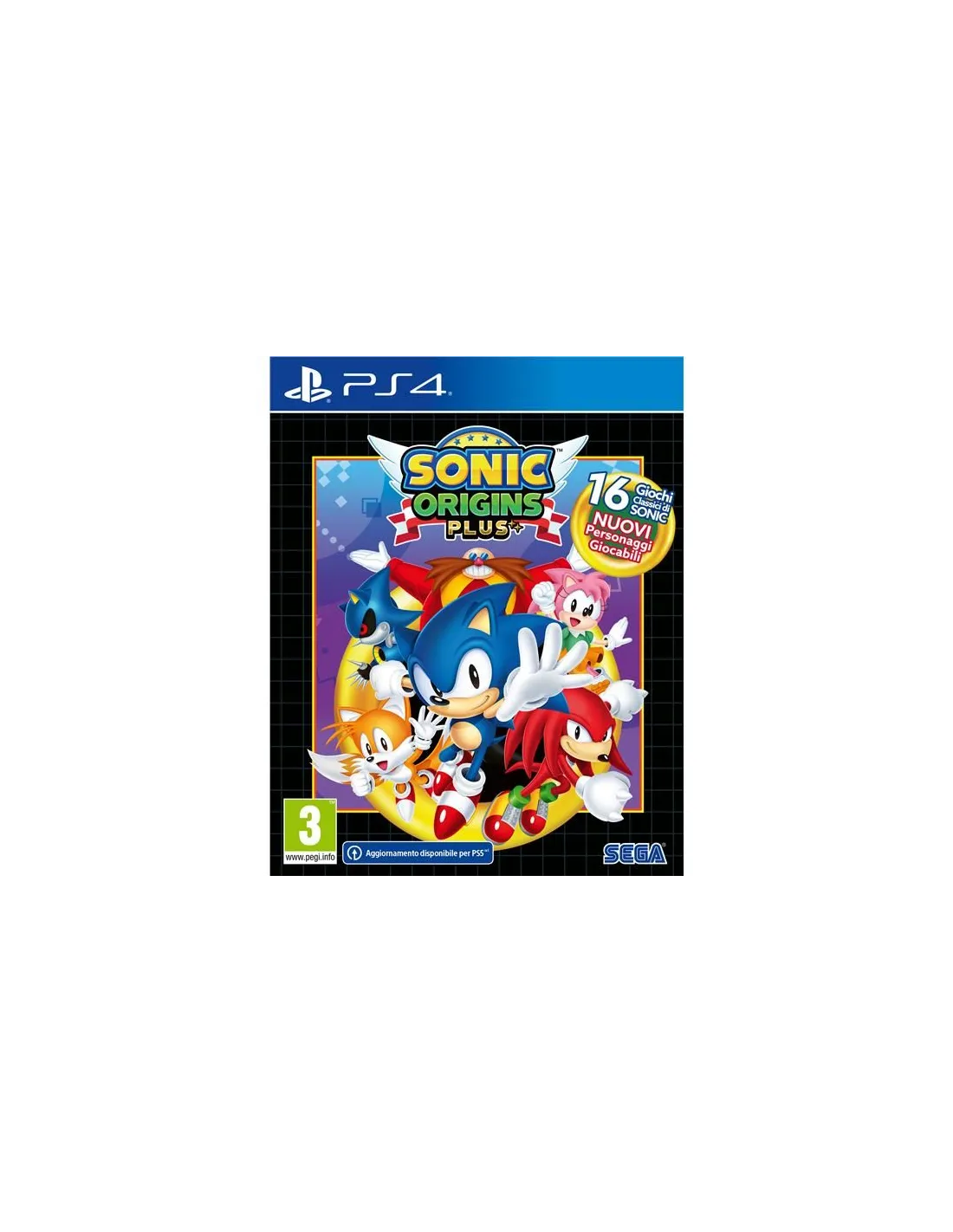 NUOVI SBLOCCABILI : completa missioni per sbloccare la modalità Specchio, nuove fasi, sfide, contenuti dietro le quinte, lettore musicale, corti animati, fasi speciali e molto altro!NUOVI PERSONAGGI GIOCABILIGioca nei panni di Sonic, Tails, o Knuckles in Sonic The Hedgehog, Sonic The Hedgehog 2, Sonic 3 & Knuckles, e Sonic CD! E, per la prima volta in assoluto, gioca nei panni di Amy Rose in questi leggendari titoli classici!