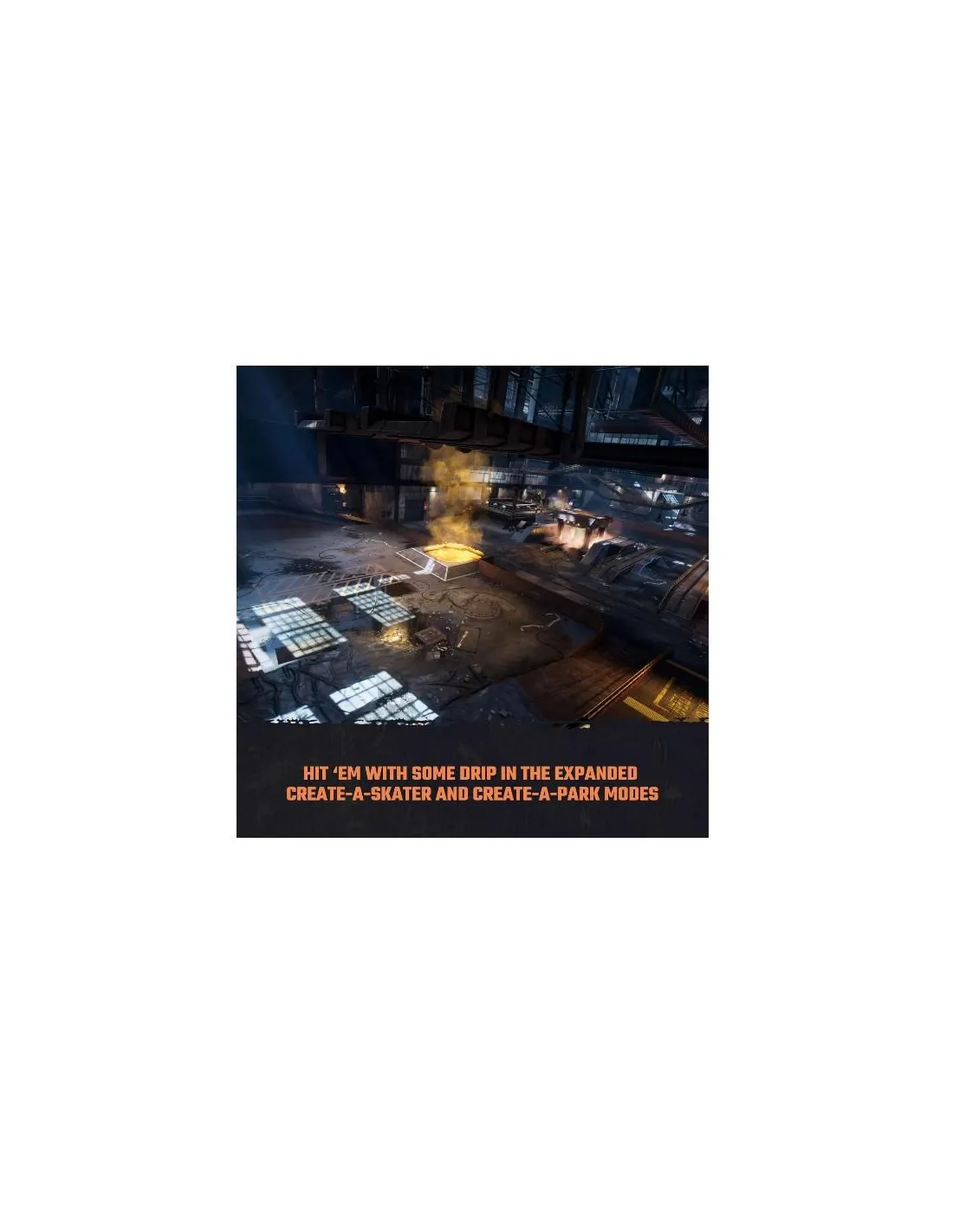 - Sbatti in faccia a tutti il tuo stile con le modalità espanse Crea uno skater e Crea un park, che per la prima volta permettono di creare obiettivi personalizzati da condividere con gli amici.