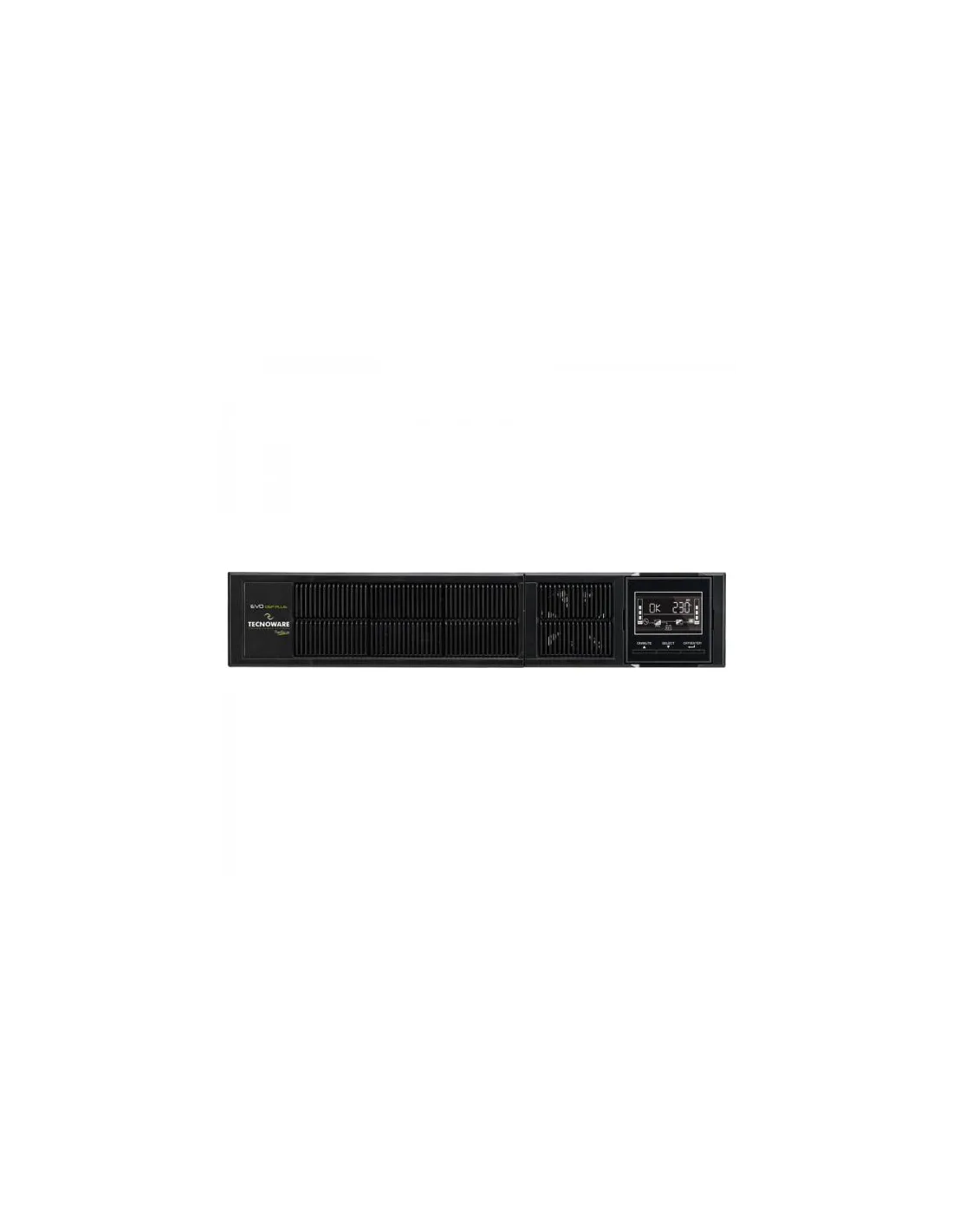 TecnowareGruppo di continuità EVO DSP PLUS 1.200 RACK TOWER - Potenza 1.200 VA PF 0,9. Tecnologia On Line (VFI) DSP, Efficienza 94%, Ingresso/uscita 230/230Vac 50/60Hz, 8 Prese IEC C13, dimensioni 43,8x8,8x31 cm (2U), peso 12 Kg, autonomia 10 min, contiene 2 batterie da 12Vdc 9AH. Posizionamento in Rack 19" o Tower, Display LCD grafico multifunzione, bypass statico, Hot Swap Battery, Connettore EPO, porte di comunicazione USB ed RS232, per il controllo UPS e la programmazione di accensione/spegnimento tramite il software gratuito TecnoManager. Scheda SNMP o Dry Contact (opzionale).