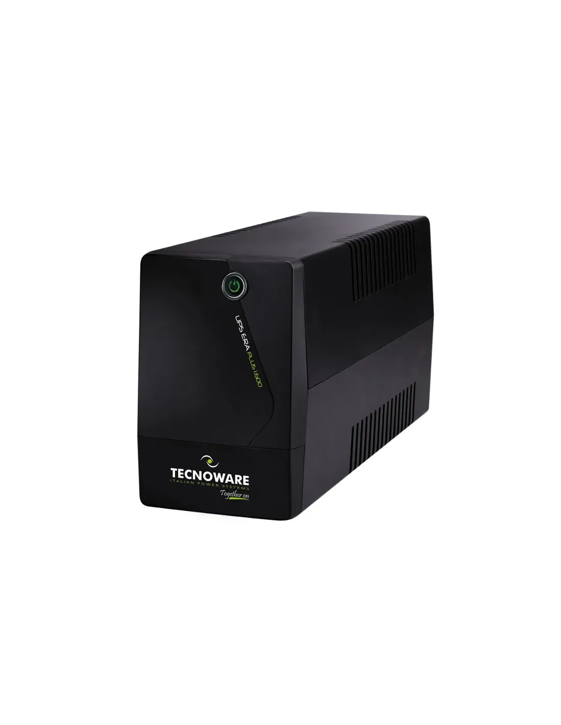 Gruppo di continuità UPS ERA PLUS 1600VA, Batteria da 12V 11Ah, Dispone di 1 Cavo fisso d'ingresso SCHUKO e 2 uscite SCHUKO protette da Black-Out, sovratensioni e sottotensioni. Tecnologia Line Interactive Plus. Dimensioni 10x14x28 cm, peso 5,5 kg. Dotato di Tasto On-Off con LED multifunzione integrato ad allarme sonoro per la segnalazione dello stato di funzionamento e di interfaccia usb per il controllo gruppo di continuità ups e la programmazione di accensione/spegnimento tramite il software gratuito tecnomanager win/mac. Studiato per proteggere PC Office, DVR per video sorveglianza, Modem/router ADSL-Fibra, Registratore di Cassa. Totalmente silenzioso.