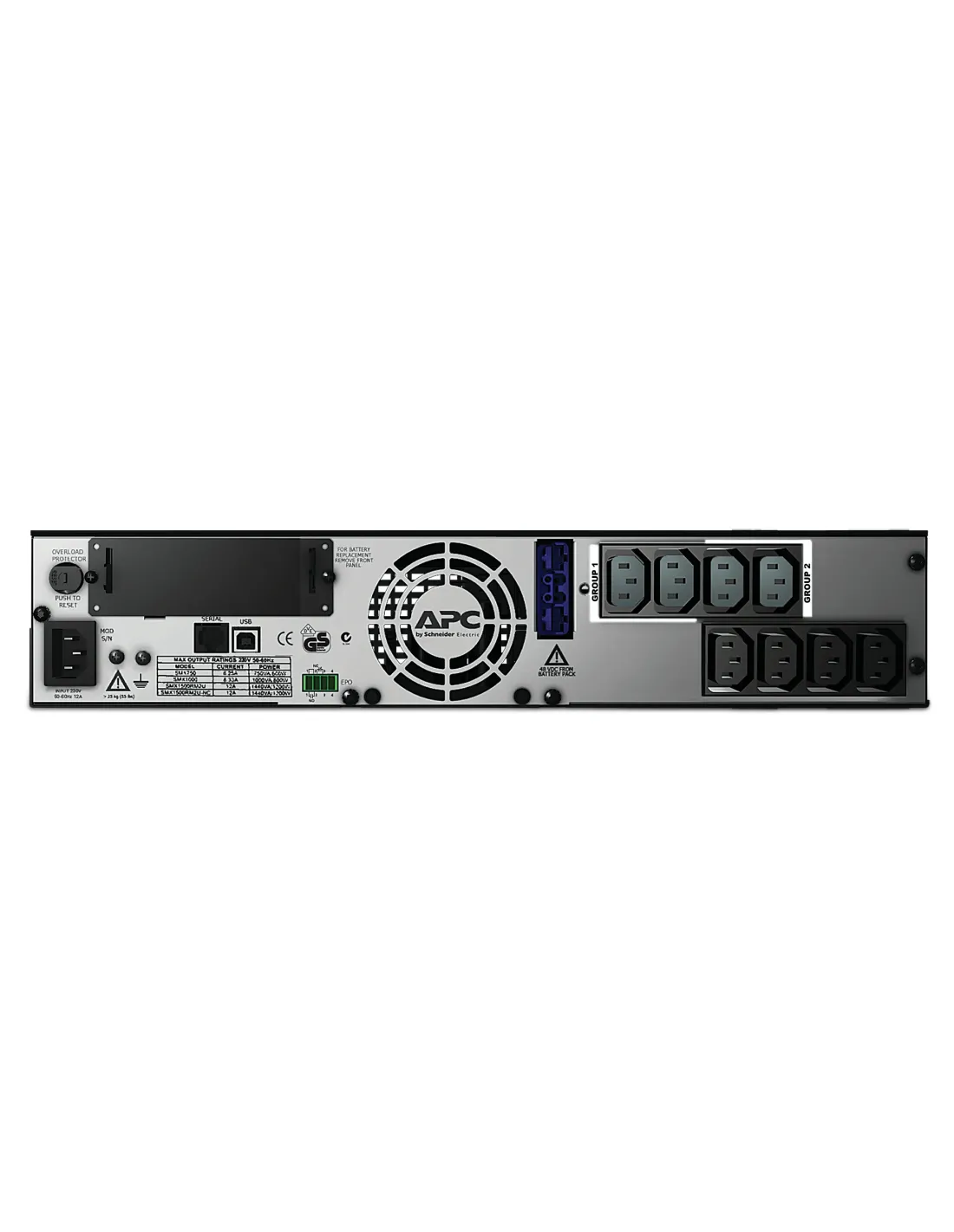 APC Smart-UPS. Topologia UPS: A linea interattiva, Potenza in uscita: 1 kVA, Potenza in uscita: 800 W. Tipo di uscita AC: Accoppiatore C13, Presa di corrente: Accoppiatore C14, Quantità prese AC: 8 presa(e) AC. Tecnologia batteria: Acido piombo (VRLA), Capacità della batteria: 299 VAh, Tempo di salvataggio minimo a pieno carico: 8,1 min. Fattore di forma: Rackmount/Tower, Colore del prodotto: Nero, Capacità di rack: 2U. Certificati di conformità: RoHS, Certificazione: CE, EN/IEC 62040-1, EN/IEC 62040-2, RCM, VDE, REACH, PEP, EOLI