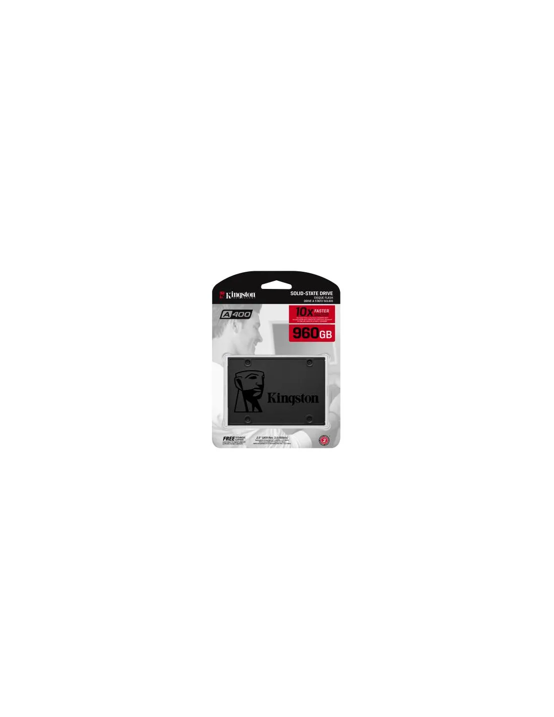 Il drive a stato solido A400 di Kingston consente di ottenere uno straordinario miglioramento della reattività del vostro sistema, con tempi di avvio, caricamento e trasferimento dati senza paragoni rispetto agli hard drive di tipo meccanico. Equipaggiato con un controller di ultima generazione che permette di raggiungere velocità in lettura e scrittura pari a 500 MB/s e 450 MB/s1, questo drive SSD risulta essere 10 volte più veloce di un hard drive tradizionale e assicura elevate prestazioni, elevata reattività dei processi multi-tasking e un notevole incremento delle prestazioni complessive del sistema. Superiore anche per quanto riguarda affidabilità e durata, il drive A400 è composto da una memoria Flash. Grazie alla totale assenza di parti in movimento, il rischio di guasti e malfunzionamenti è inferiore rispetto a un hard drive di tipo tradizionale. Il dispositivo offre anche un funzionamento più silenzioso e meno soggetto a surriscaldamento, unitamente a un elevata resistenza a vibrazioni e impatti, che lo rende la soluzione ideale per i notebook e gli altri dispositivi di elaborazione mobile. A400 è disponibile in differenti formati e capacità, da 120 GB a 1,92 TB2 per offrirvi tutto lo spazio di cui avete bisogno per applicazioni, video, foto e altri documenti importanti. Queste caratteristiche permettono di dire addio agli hard drive tradizionali e ai drive SSD di piccole dimensioni, che possono così essere sostituiti da un drive di capacità sufficienti a contenere tutti i vostri file.