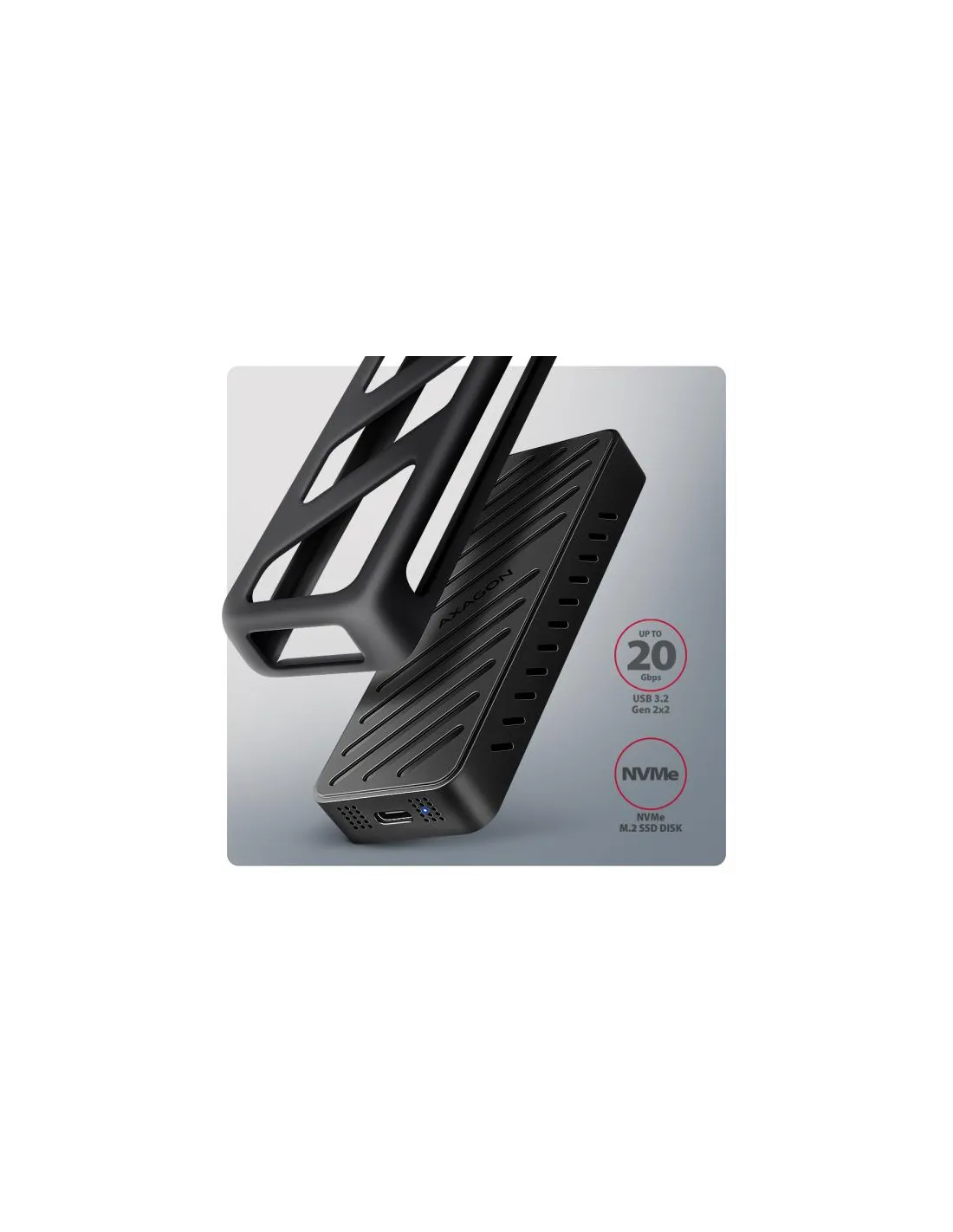 Axagon EEM2-20G NVMe-SSD-Gehäuse USB-C 3.2 20 Gbps 2230 - 2280 - schwarz. Tipo di prodotto: Box esterno SSD. numero di dispositivi di archivio supportati: 1, Dimensione del dispositivo di archiviazione: M.2, Interfacce dell'unità di archiviazione supportate: M.2, NVMe-oF, PCI Express. Velocità di trasferimento dati: 20 Gbit/s. Colore del prodotto: Nero. Connettore USB: USB tipo-C