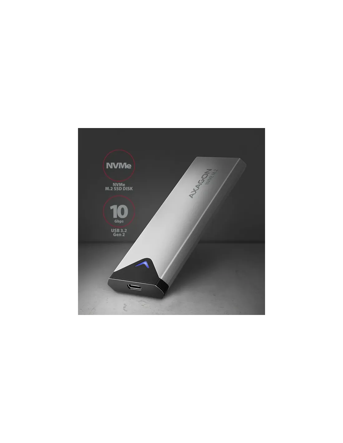 Axagon EEM2-UG2. Tipo di prodotto: Box esterno SSD. numero di dispositivi di archivio supportati: 1, Dimensione del dispositivo di archiviazione: M.2, Interfacce dell'unità di archiviazione supportate: NVMe-oF. Velocità di trasferimento dati: 10 Gbit/s. Colore del prodotto: Nero, Grigio. Connettore USB: USB tipo-C