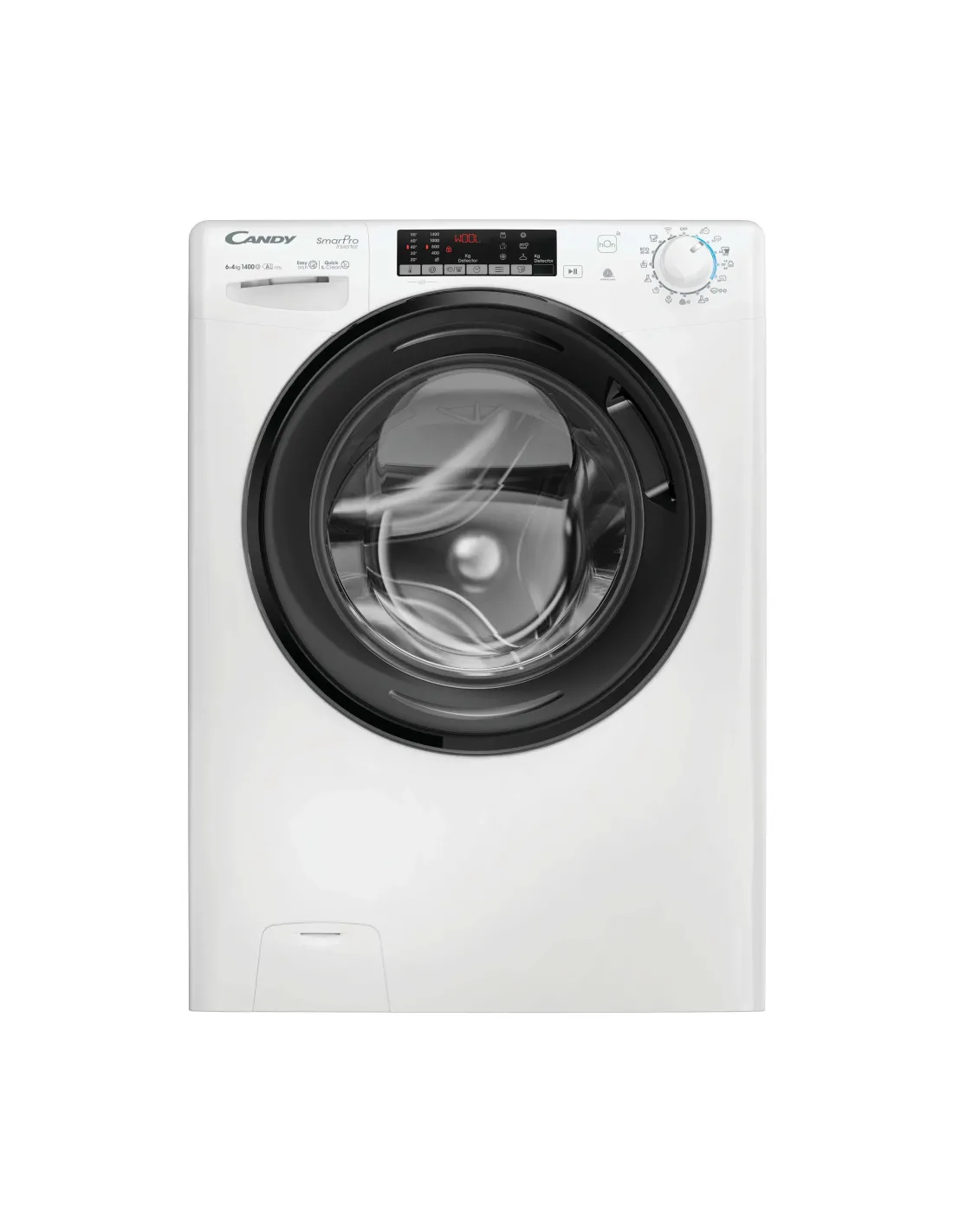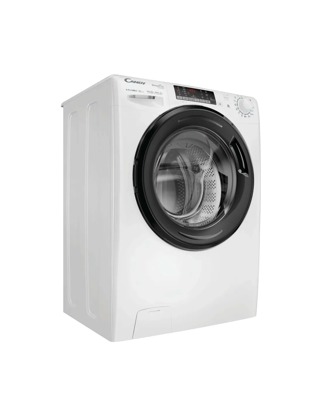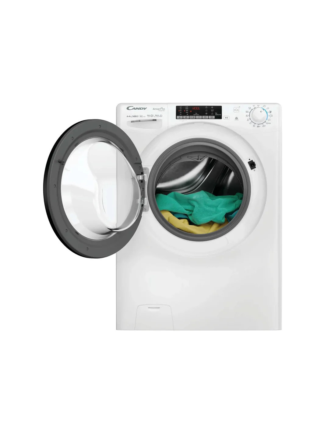Candy Smart Pro Inverter, Lavasciuga Slim 6+4 KG, 10% più efficente della classe A, 1400 giri, Bianco, Inverter, Vapore, Wi-Fi, CSOW44644TWMB6-S, Caricamento frontale, Libera installazione, Bianco, Sinistra, Nero, Trasparente, Manopola, Touch