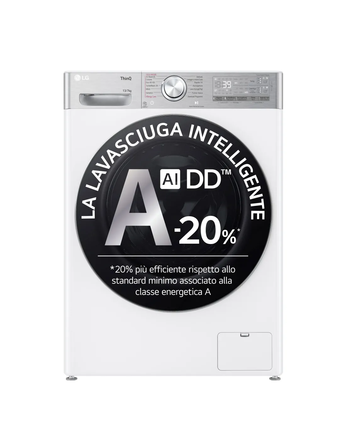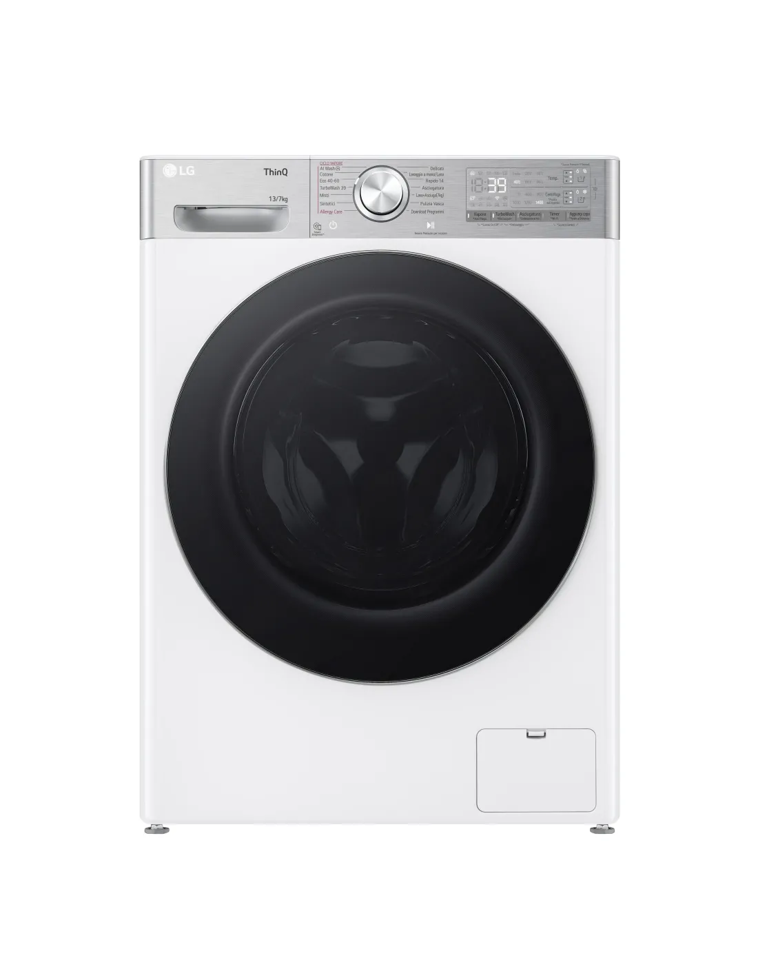 | Programmi di lavaggio | Cotone, Cura quotidiana, Delicati/Seta, Eco, Igiene/Allergy Care, Mix, Rapido 14min, AI intelligente, A tamburo, Sintetico |