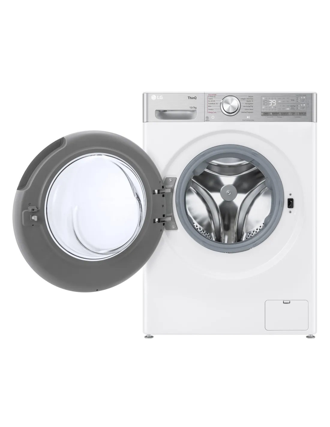 LG D4R9513TPWC Lavasciuga 13/7kg AI DD, Classe D, 1400 giri, TurboWash 360, Autodosaggio. Tipo di carica: Caricamento frontale, Posizionamento dell'apparecchio: Libera installazione, Colore del prodotto: Argento, Bianco. Capacità di asciugatura: 7 kg, Velocità di centrifuga massima: 1400 Giri/min, Classe di efficienza della centrifuga: A. Angolo di apertura della porta: 150°. Classe di efficienza energetica (lavaggio): A, Classe di efficienza energetica( lavaggio e asciugatura): D, Consumo di acqua (lavaggio): 58 L. Durata della garanzia: 2 anno/i