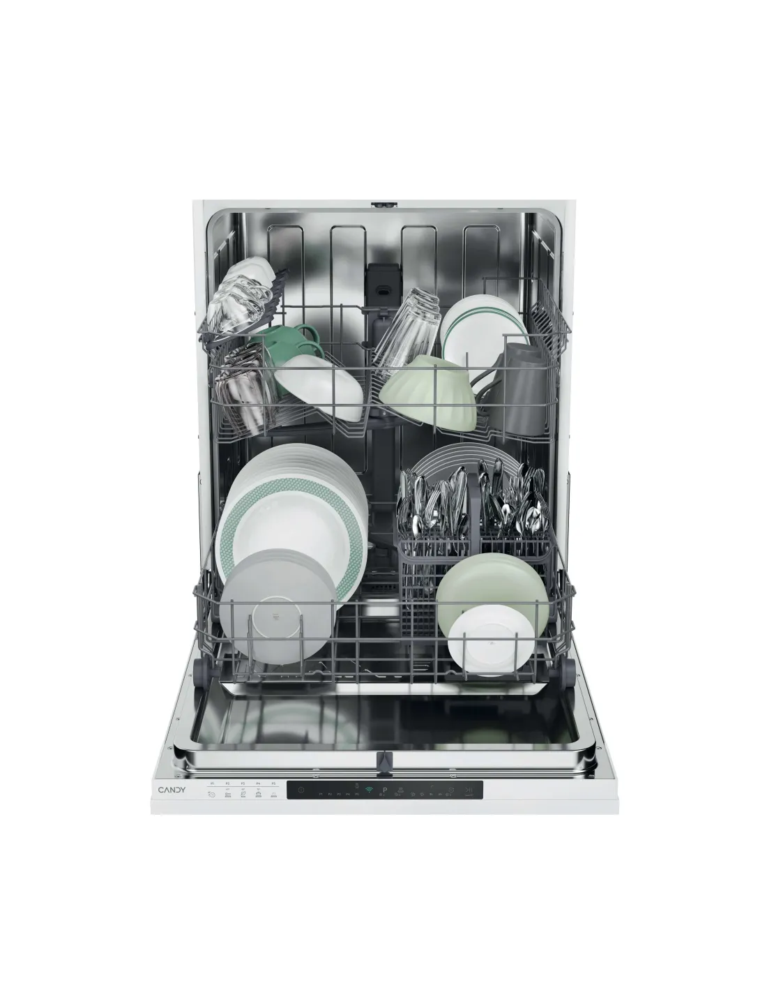 Candy RapidÓ CI 3E53L0W. Posizionamento dell'apparecchio: A scomparsa totale, Dimensione: Dimensione massima (60 cm), Colore pannello di controllo: Bianco. Numero di coperti: 13 coperti, Classe emissione rumore: D, Emissione acustica: 53 dB. Applicazioni per il controllo supportate: hOn. Classe efficienza energetica: E, Consumo di acqua per ciclo: 10,9 L, Consumo energetico per 100 cicli: 93 kWh. Larghezza: 598 mm, Profondità: 550 mm, Altezza: 818 mm